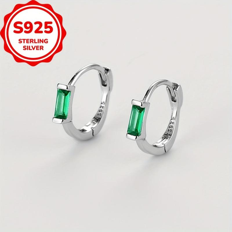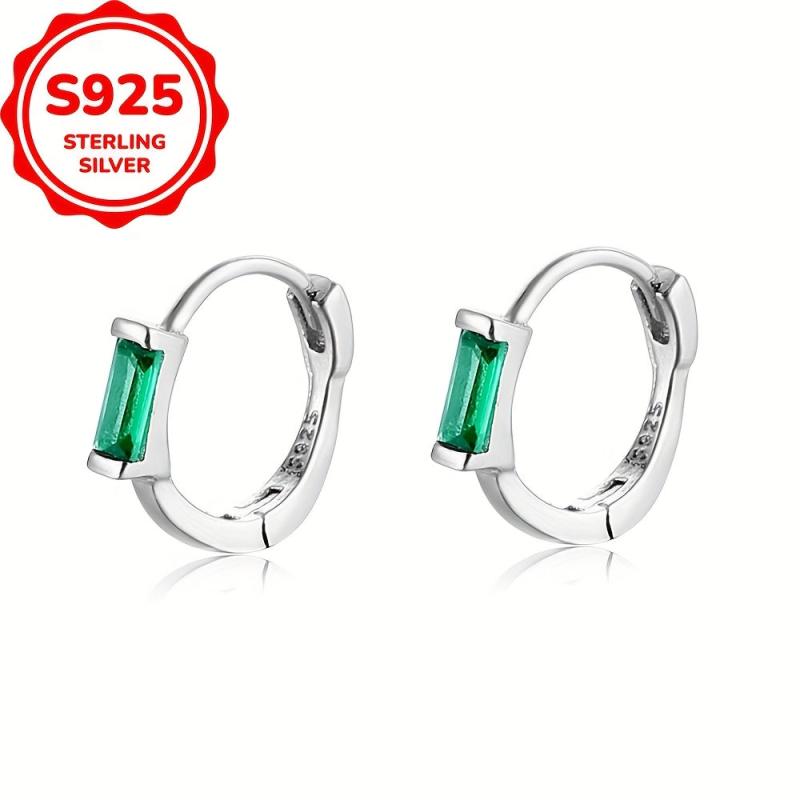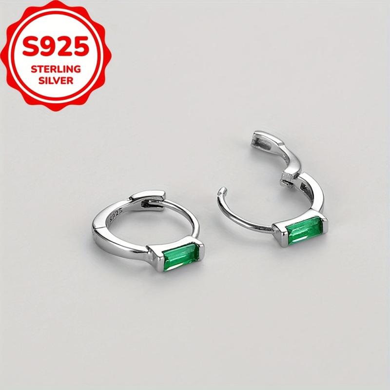 Add a touch of elegance to your daily attire with these stylish silvery earrings featuring synthetic green zirconia. Perfect for any occasion.