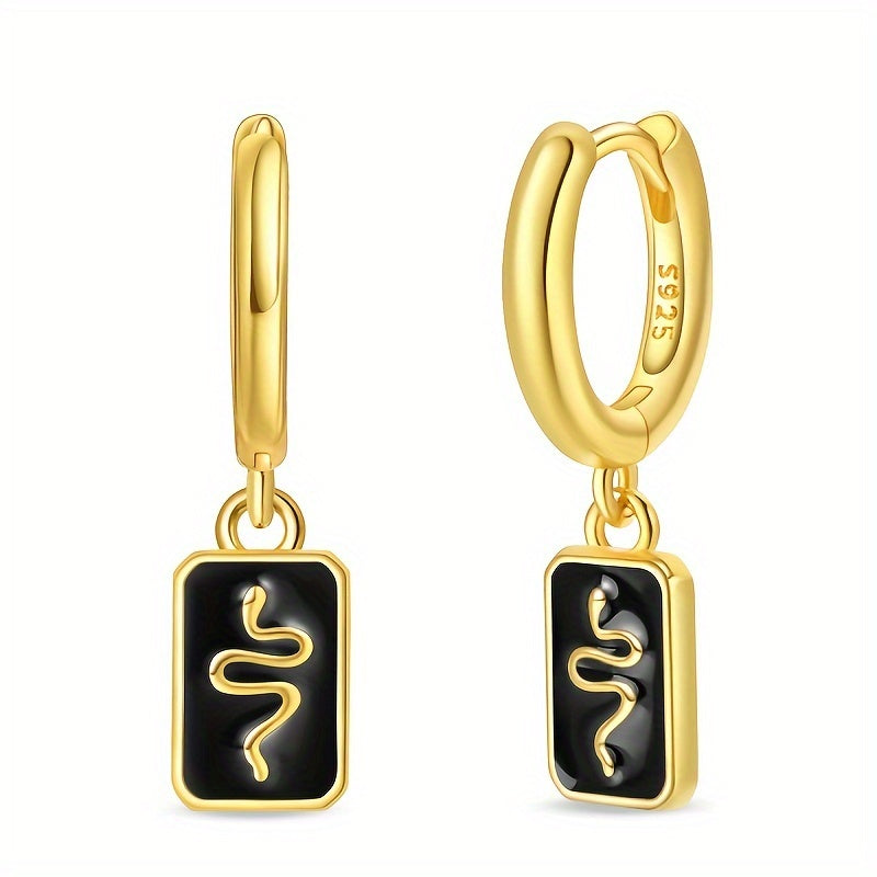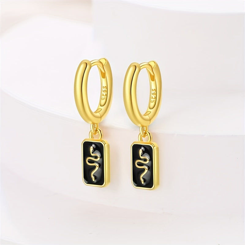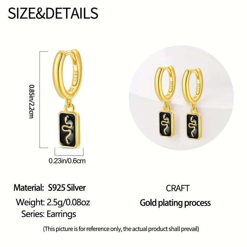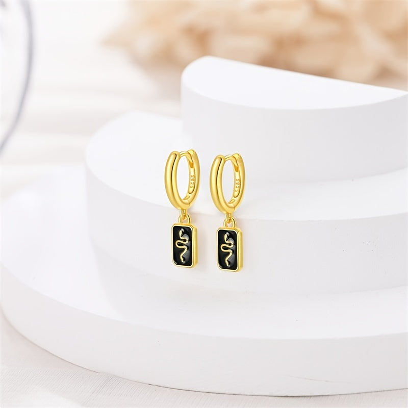 These elegant 925 sterling silver earrings feature a golden spirit snake design, perfect for parties, weddings, and birthdays. Makes a lovely jewelry gift.