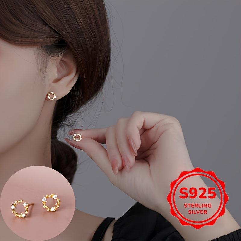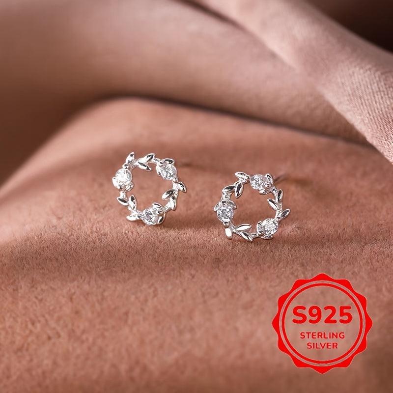 These elegant floral leaf earrings are made of 925 sterling silver and feature synthetic zirconia. Perfect for daily wear or as a Thanksgiving gift. They are lightweight and suitable for all seasons.