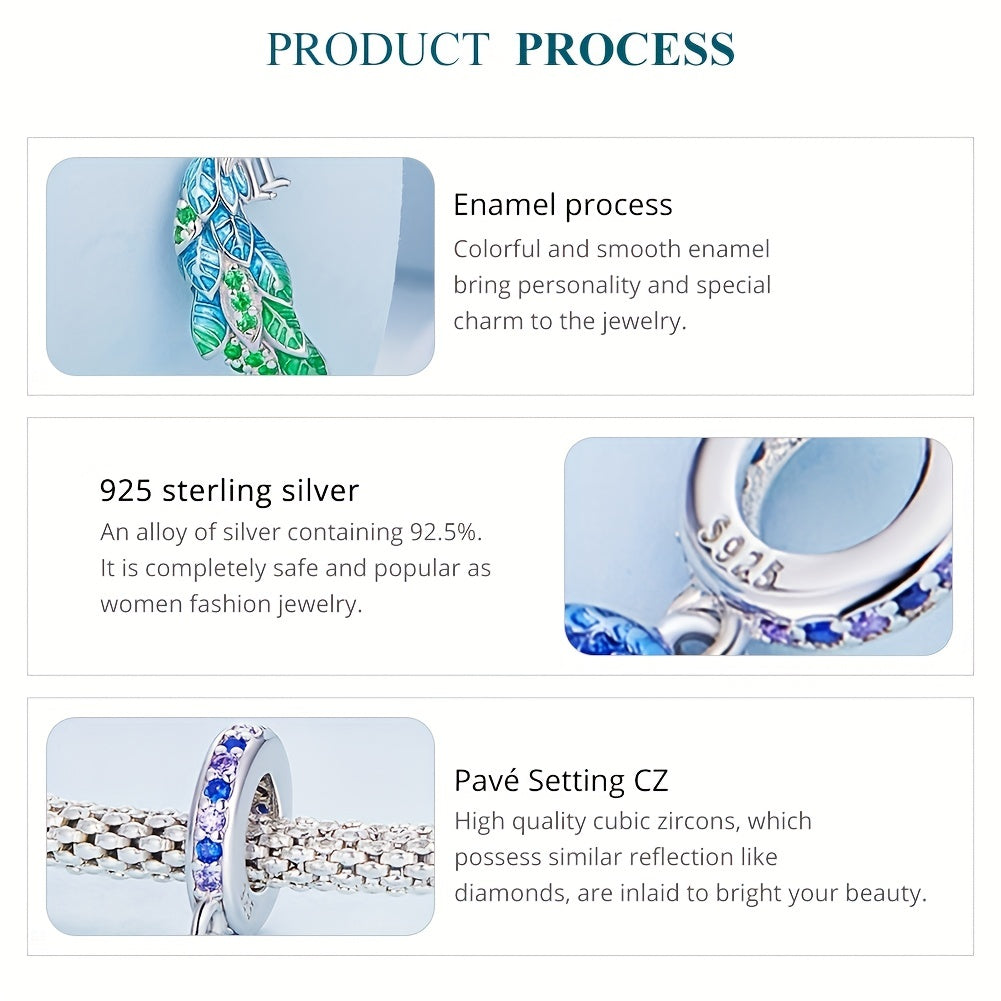 Adorn your jewelry collection with this exquisite peacock hanging beads crafted from 925 sterling silver. Perfect for adding a touch of elegance to any outfit.