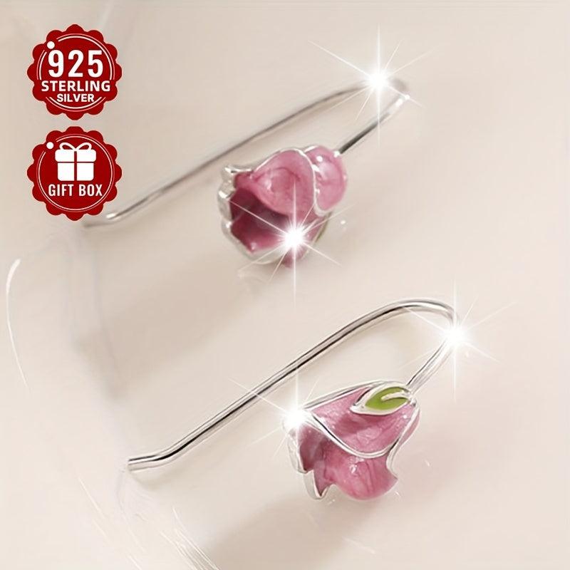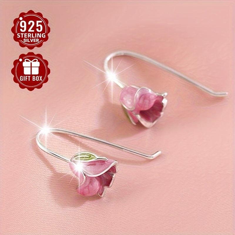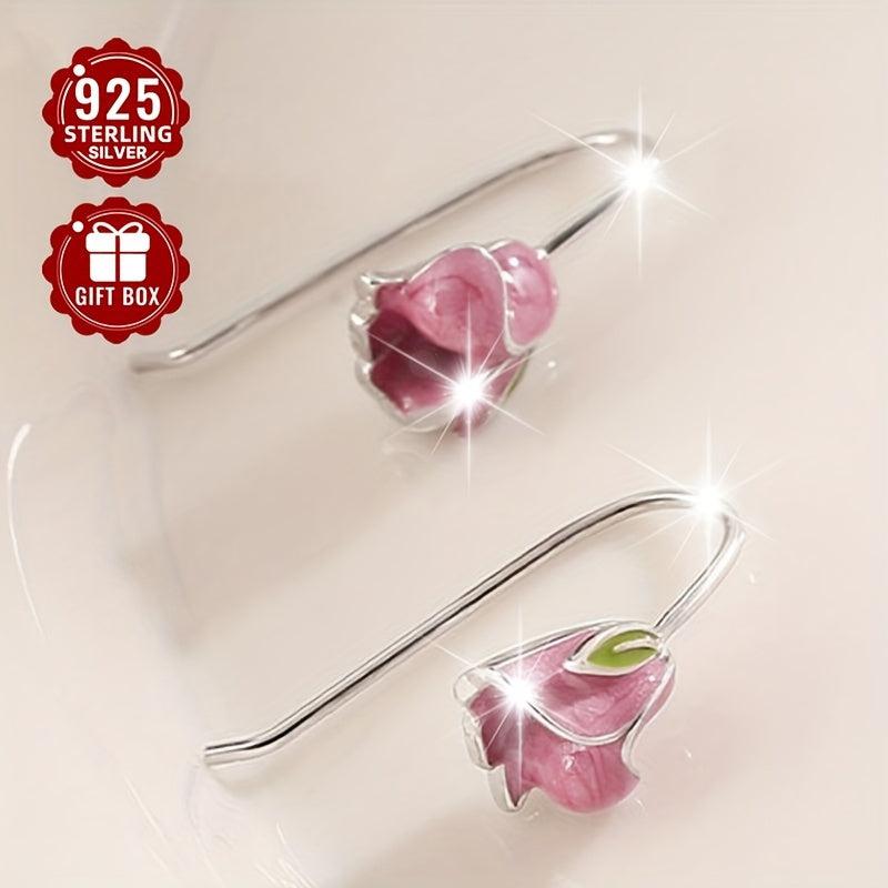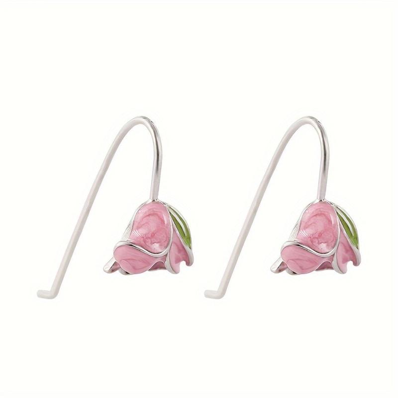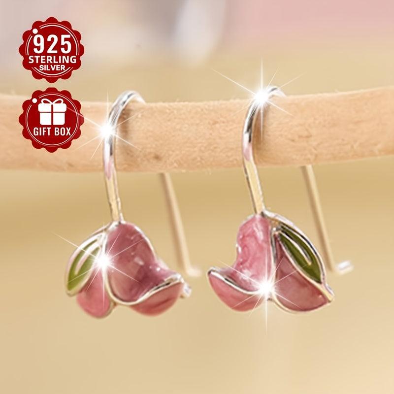 These beautiful tulip earrings are made of 925 sterling silver with pink resin, perfect for daily wear, travel, events, parties, and as a thoughtful gift.