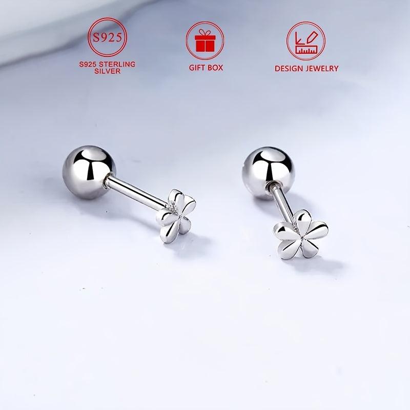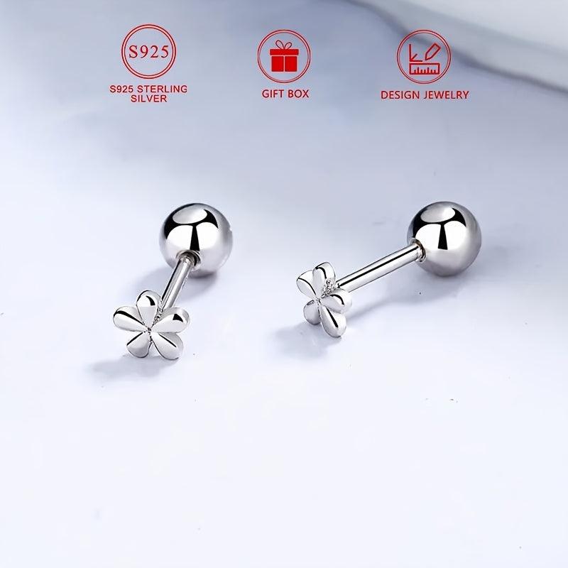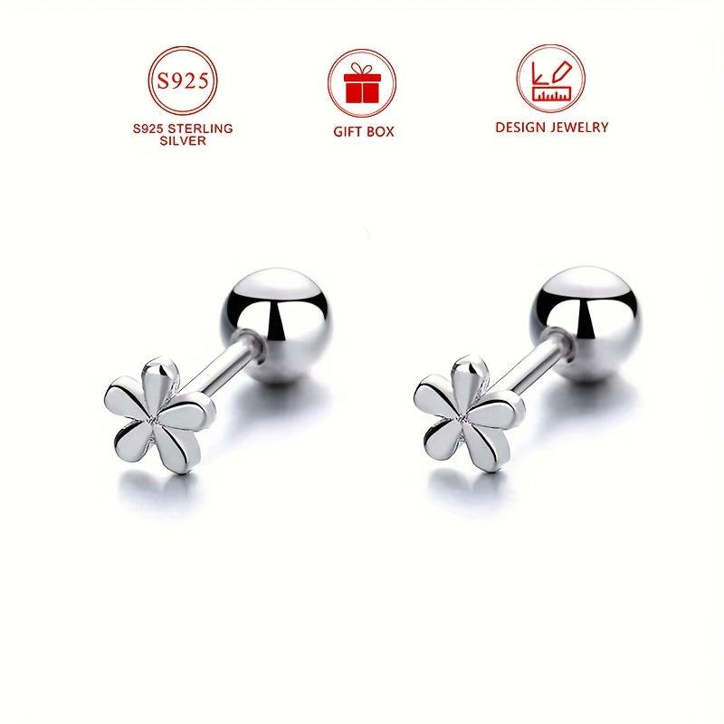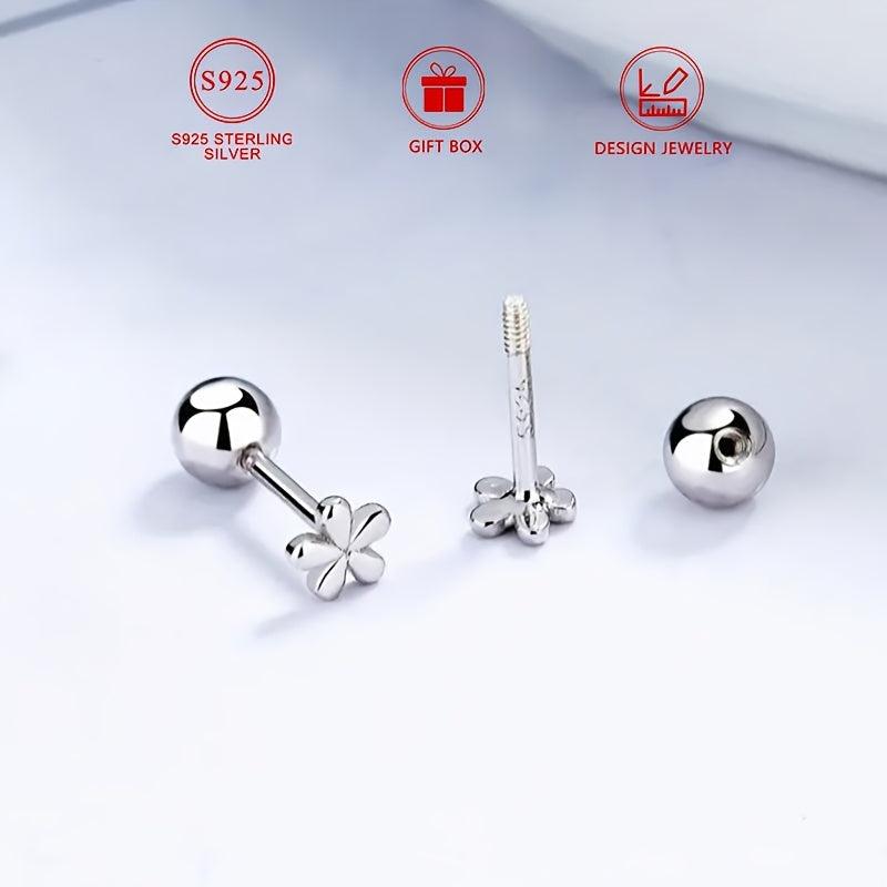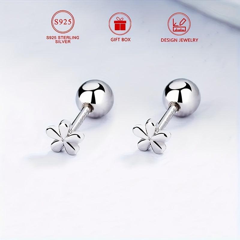 925 Sterling Silver Small Flower Earrings Women'S Daily Casual Accessories
