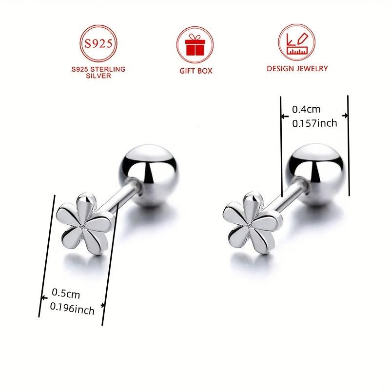 925 Sterling Silver Small Flower Earrings Women&