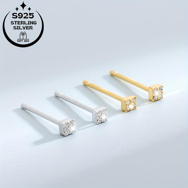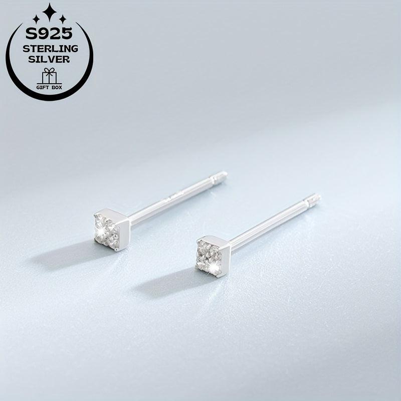 These classic style stud earrings are made of 925 sterling silver with synthetic zirconia, perfect for daily wear or gift giving. They come in a heart-shaped gift box.