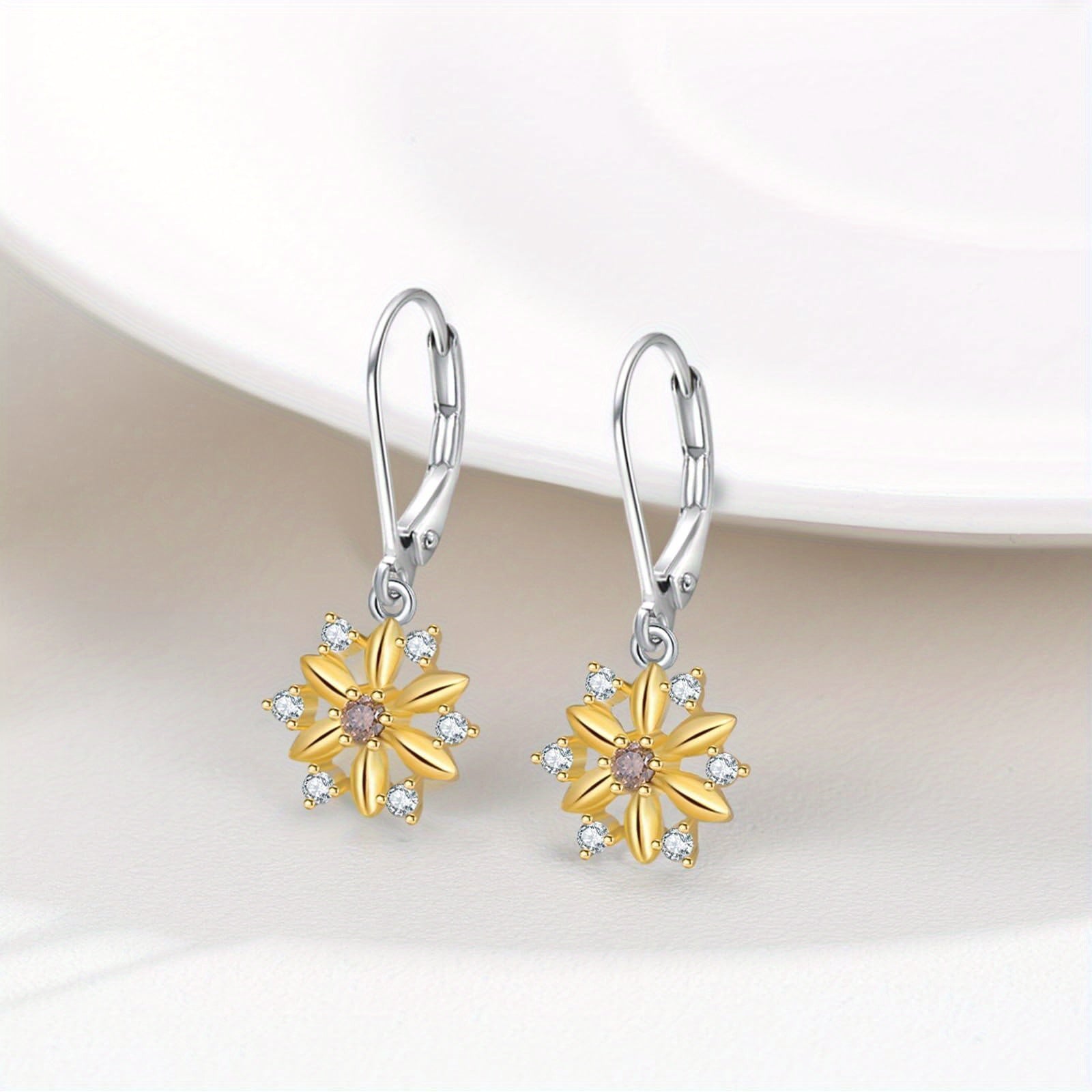 925 Sterling Silver Sunflower Leverback Earrings Cubic Daisy Drop Dangle