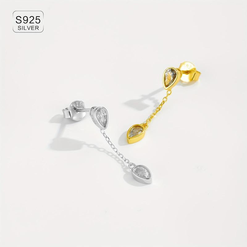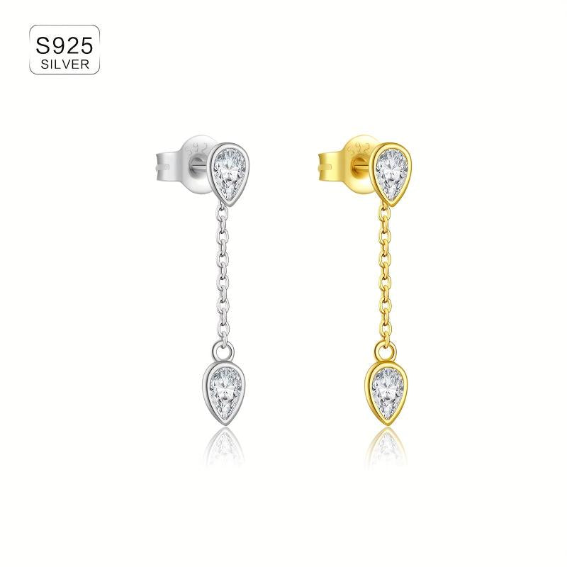 These stud earrings are made of 925 sterling silver with sparkling synthetic zirconia. They are hypoallergenic and suitable for sensitive skin.