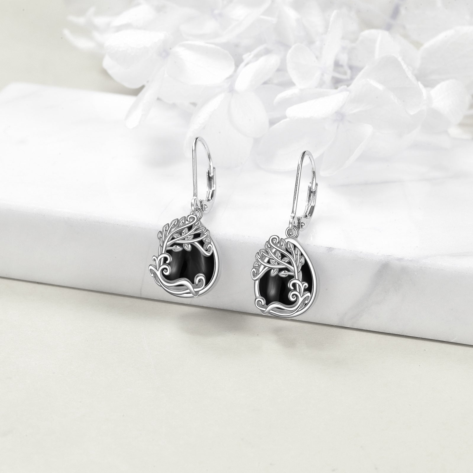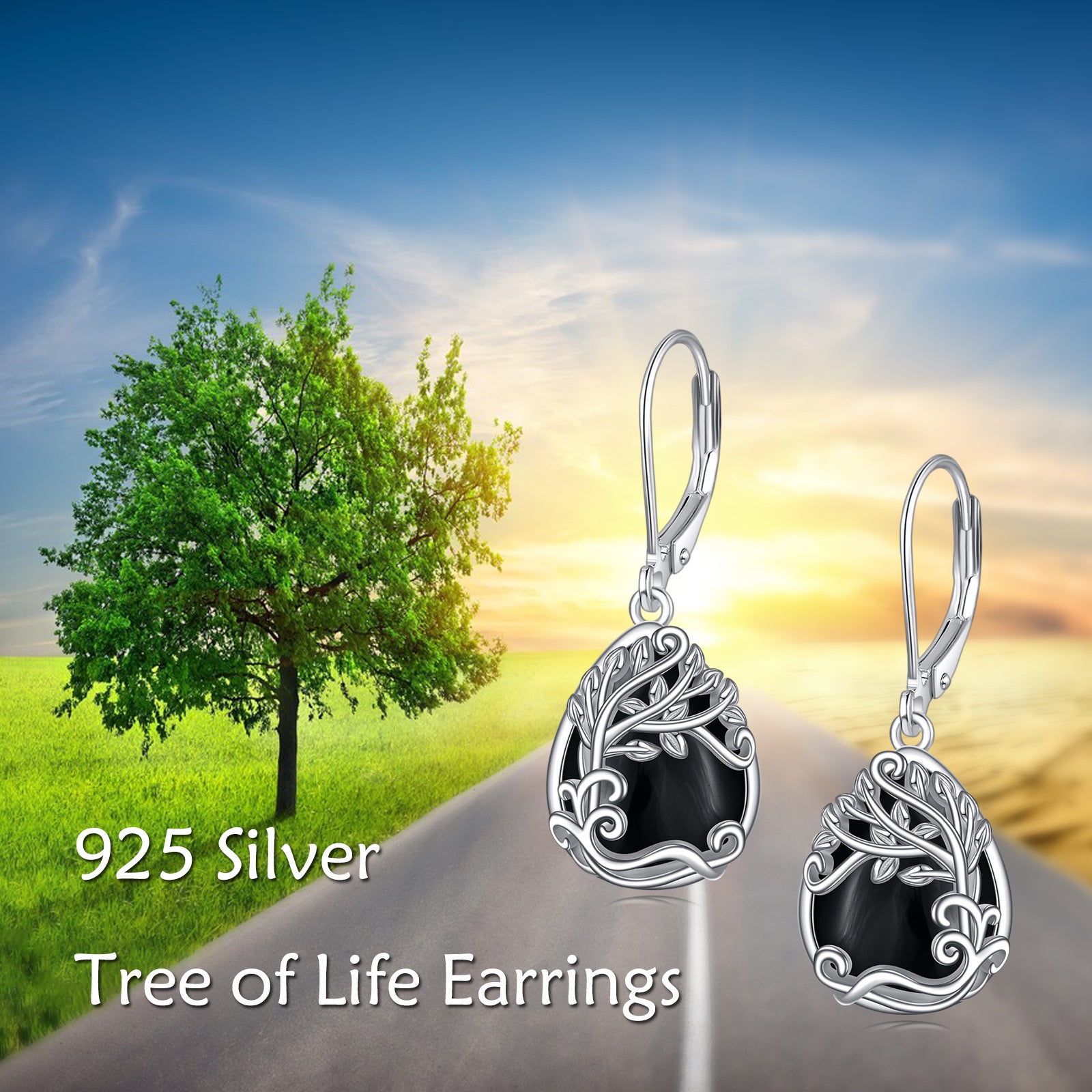 These stunning Tree of Life earrings are made of 925 sterling silver and feature beautiful aquatic agate inlay. They are a thoughtful and stylish gift for both women and men.