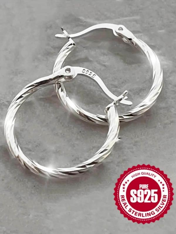 925 Sterling Silver Twisted Circle Earrings for Women Classic Style