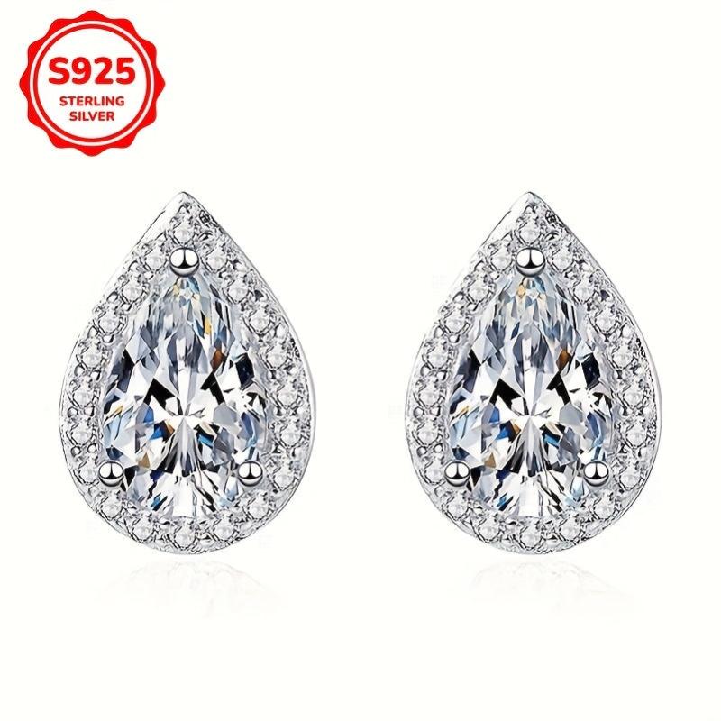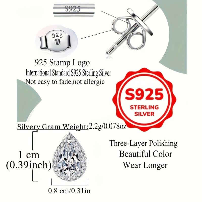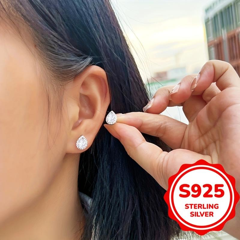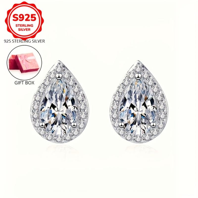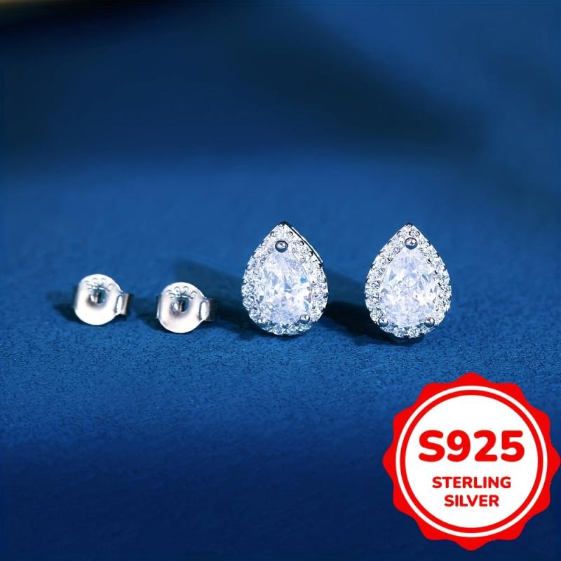 These hypoallergenic stud earrings feature sparkling water drop zirconia in a classic style, perfect for women on their wedding day.