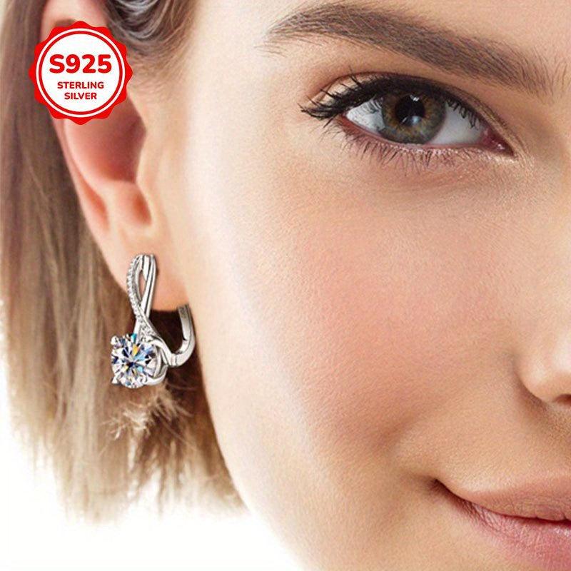 These exquisite hoop earrings feature zirconia stones set in 925 sterling silver. Perfect for weddings or casual attire, these lightweight earrings are ideal for daily wear. April birthstone design.