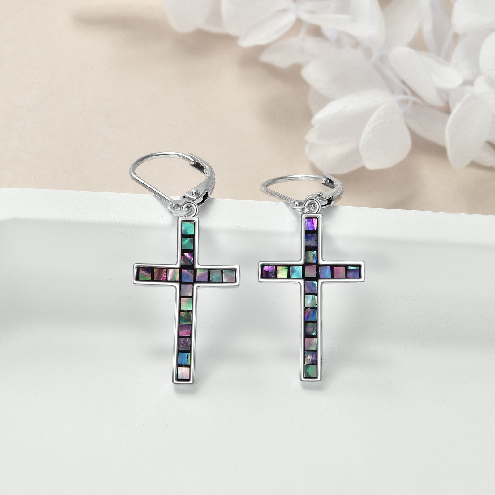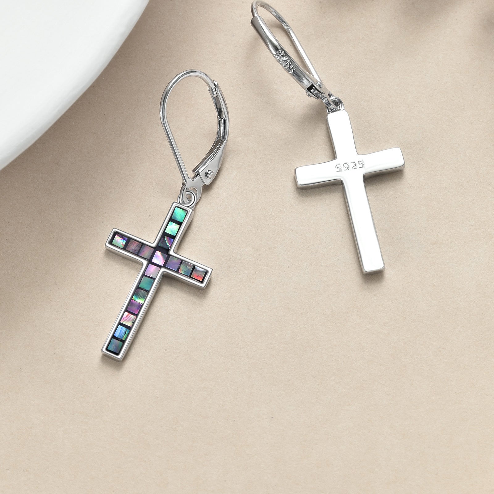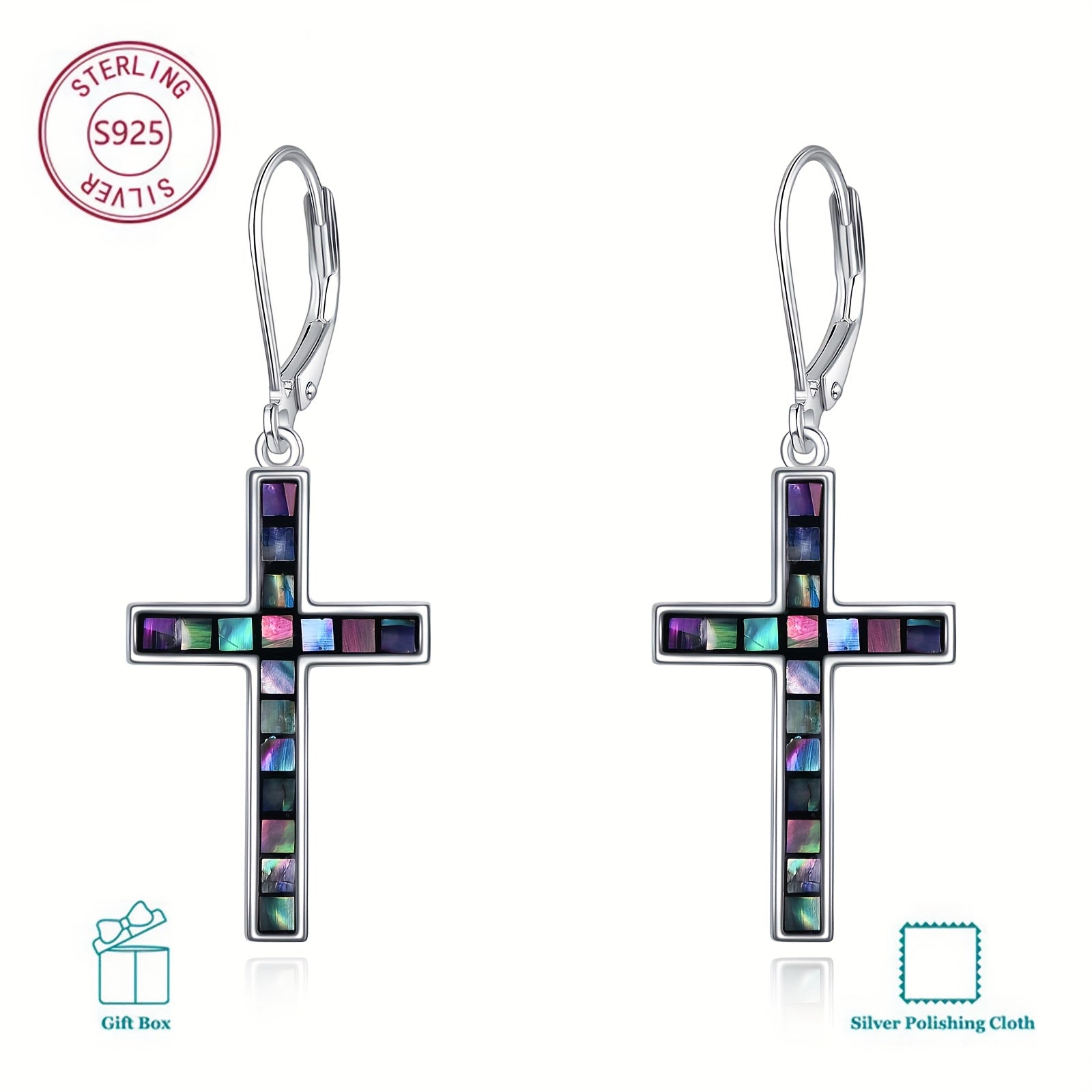 These stunning sterling silver cross earrings feature abalone shell for a unique and elegant look. They make a perfect gift for women who appreciate high-quality jewelry.