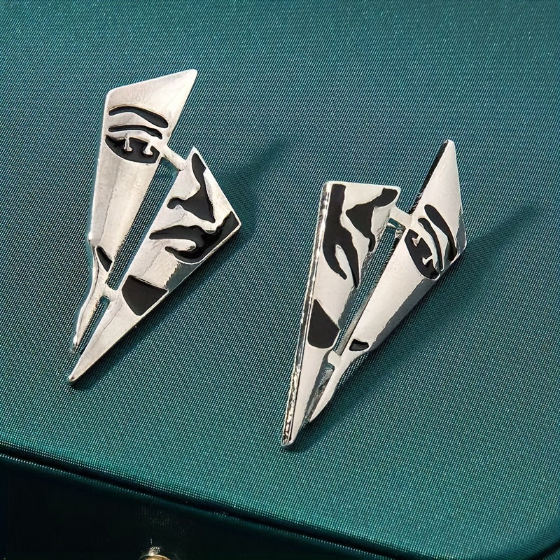 These modern abstract face stud earrings are made of unplated alloy with iron ear needle. They are perfect for daily wear and add a stylish touch to your look.