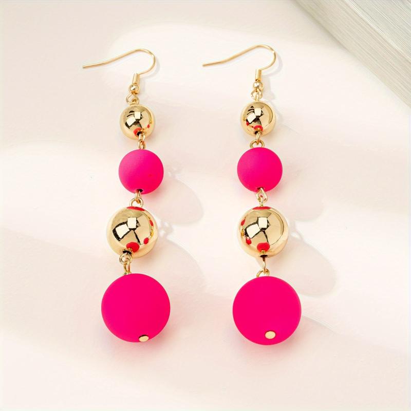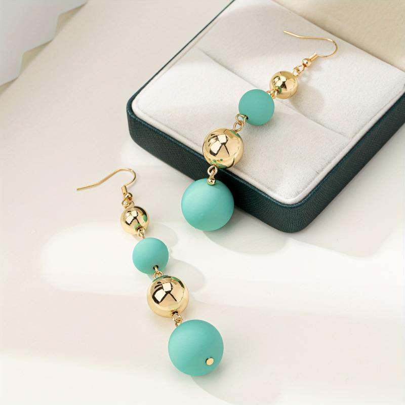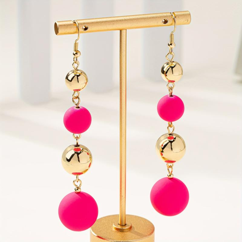 These versatile acrylic drop earrings feature a round bead and iron ear needle, making them a stylish accessory for women.