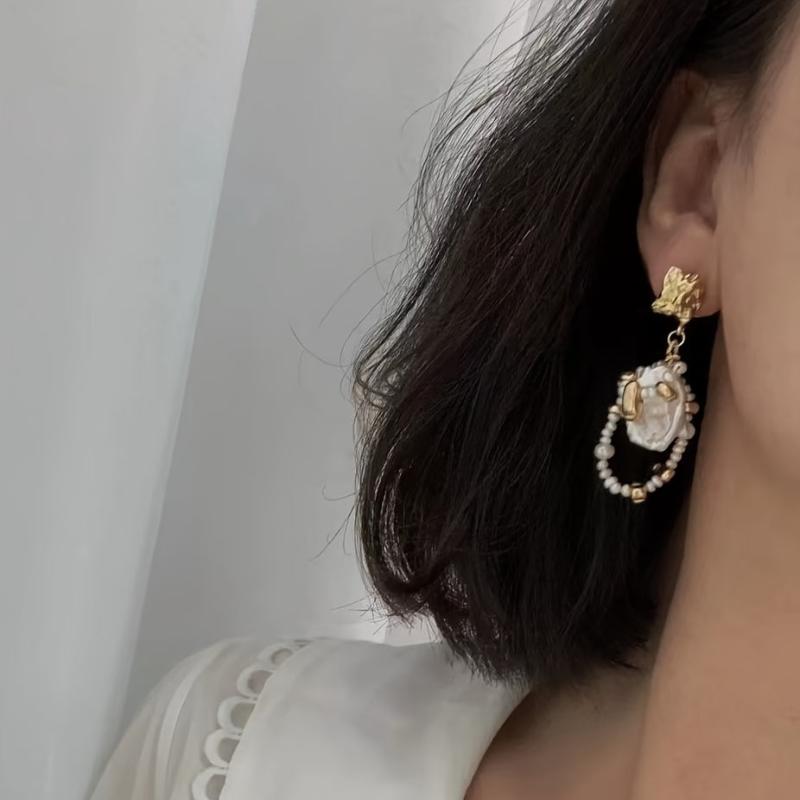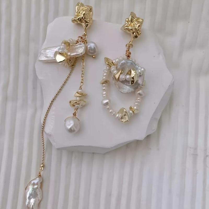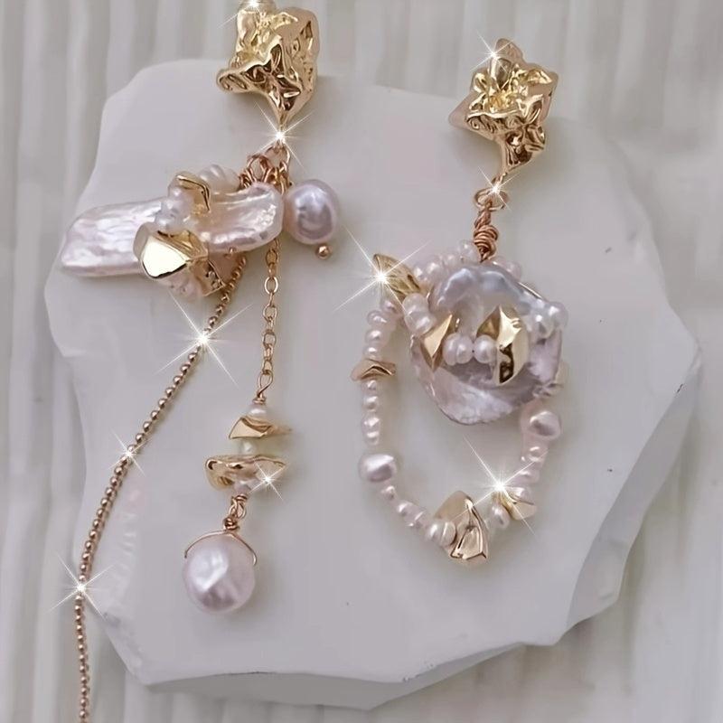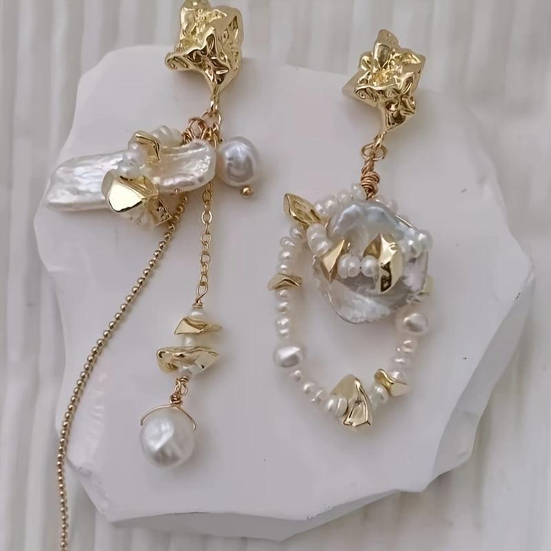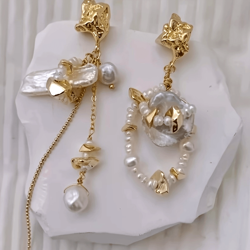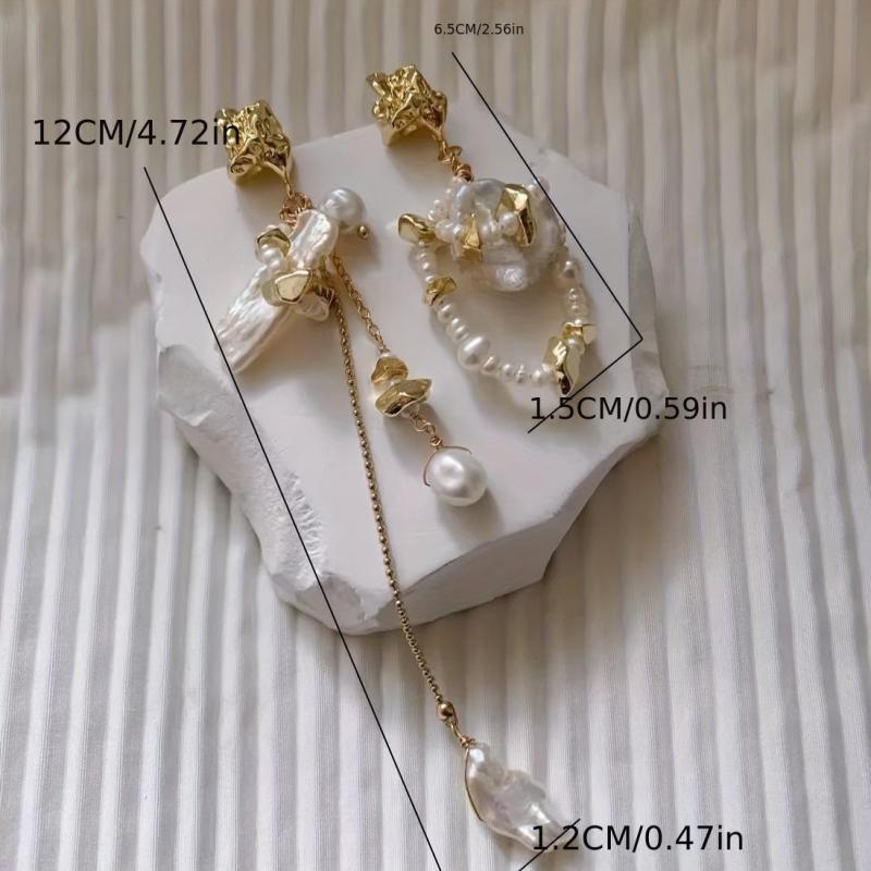 Add a touch of delicate elegance with these asymmetric dangle earrings featuring faux pearls. Perfect as a gift for a special woman.