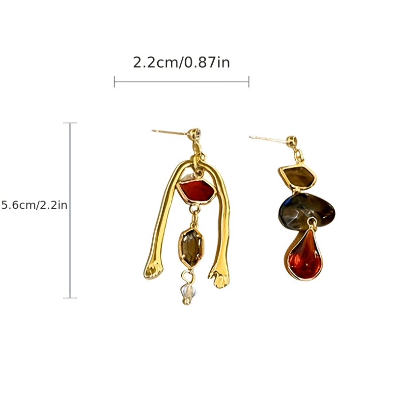 Make a statement with these stylish asymmetrical earrings, perfect for adding flair to any outfit.