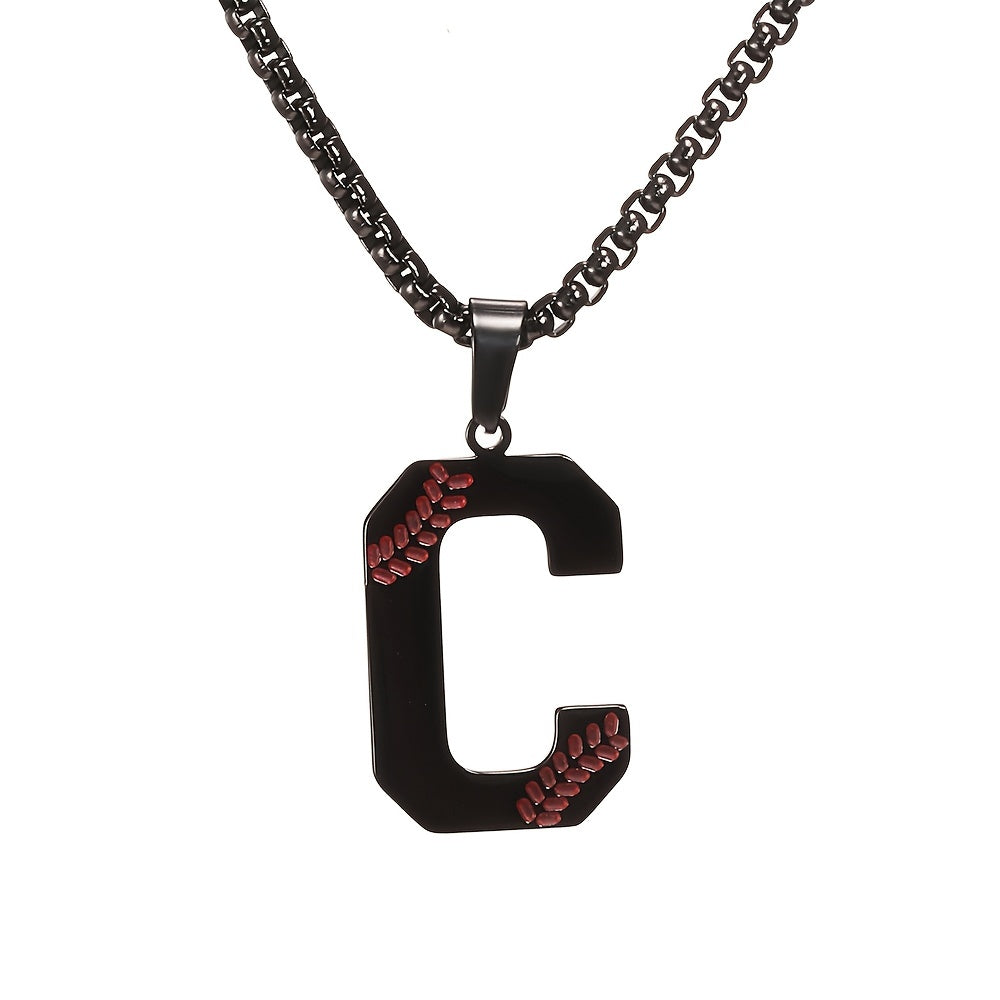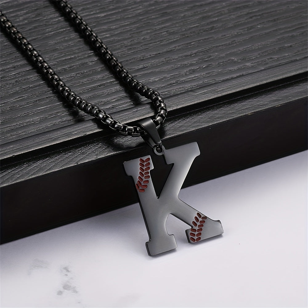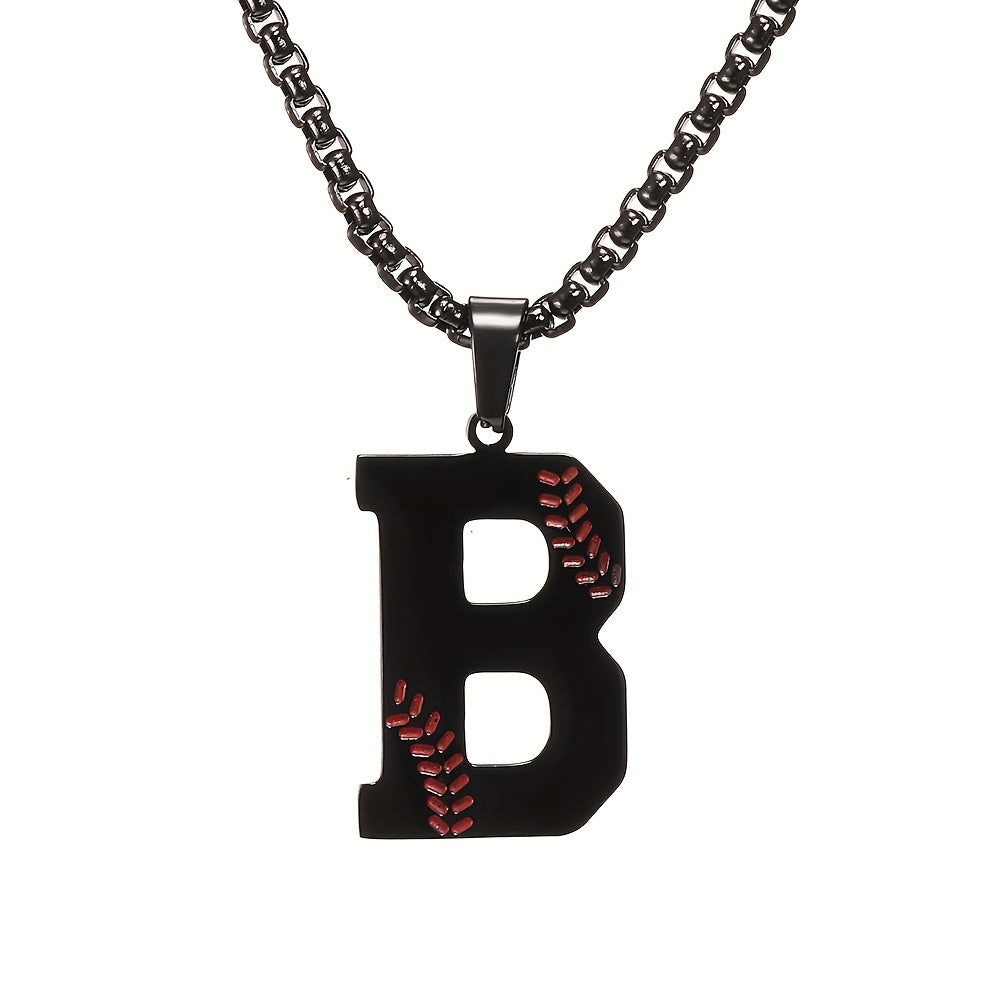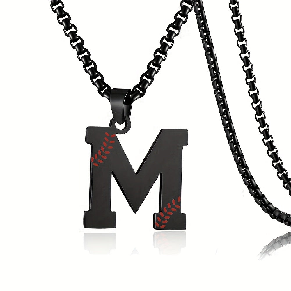 Stylish baseball initial necklace featuring letter A pendant, perfect for both men and women. Made of high-quality titanium and stainless steel in a silvery finish.