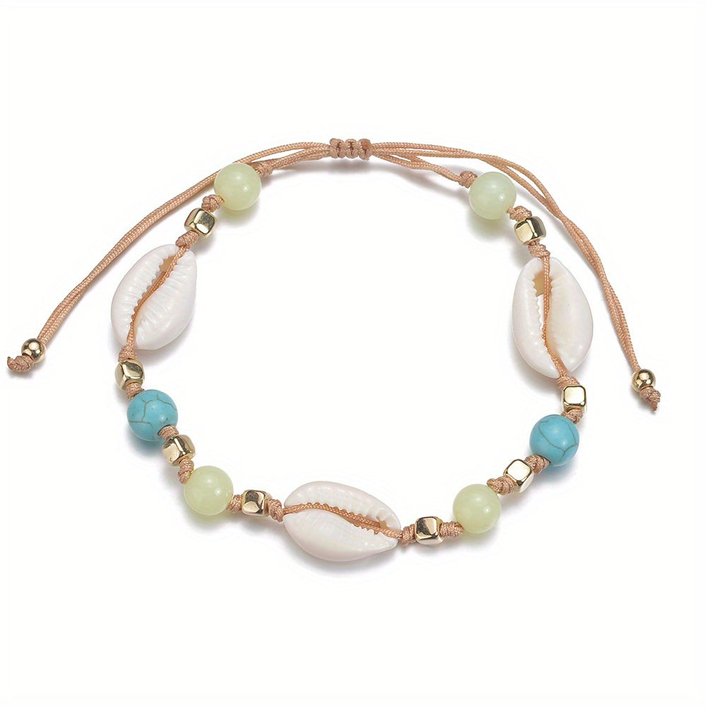 Add a touch of summer style to your outfit with this beaded anklet. Perfect for beach days and warm weather, elevate your look with this chic accessory.