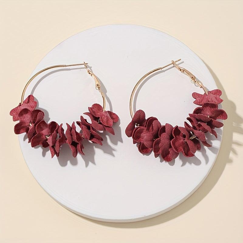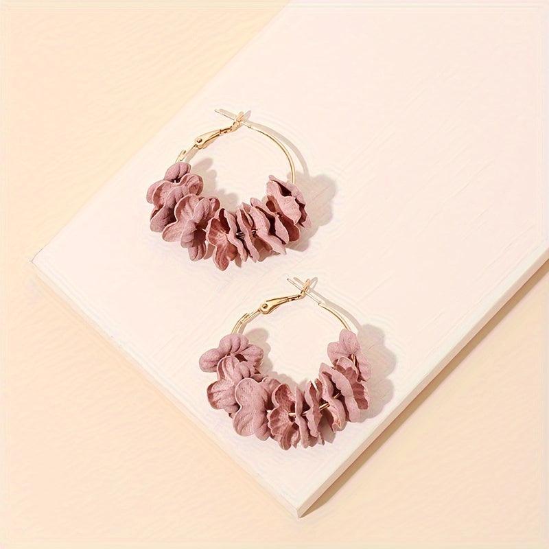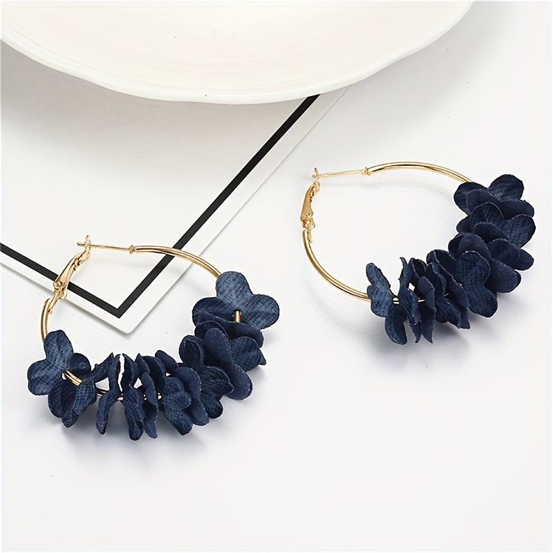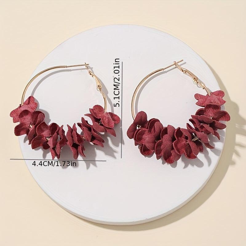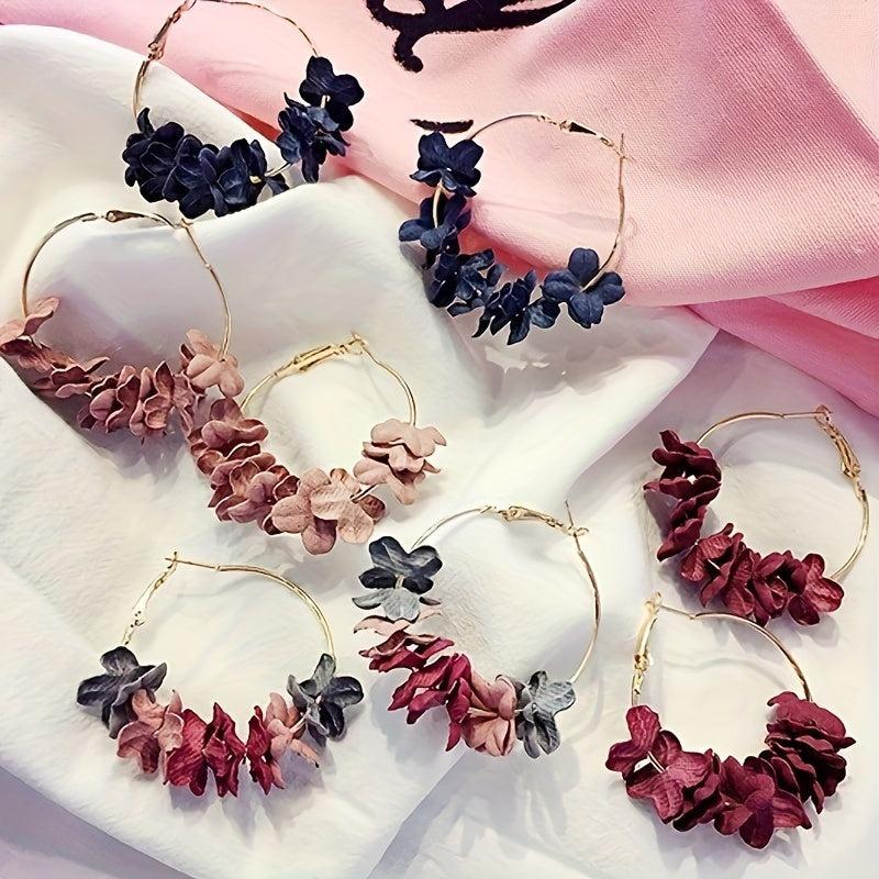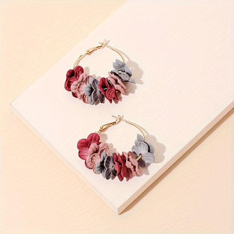 Add a pop of color to your look with these unique alloy hoop earrings featuring colorful flower petals. Perfect for a bohemian style and a touch of personality.