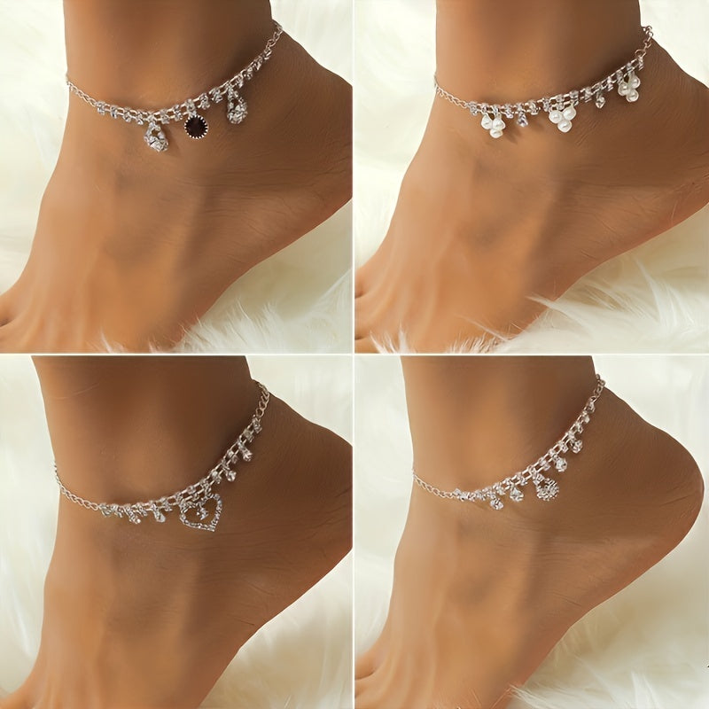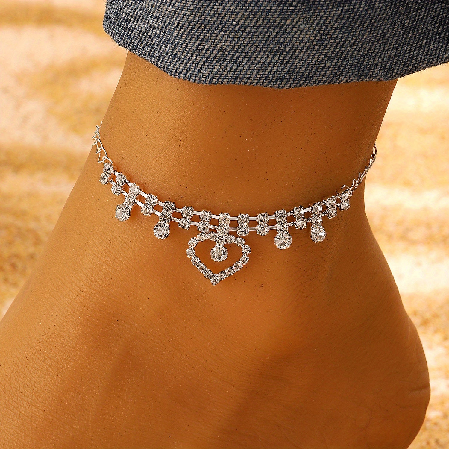 Add a touch of bohemian charm to your style with this hollow love heart pendant anklet. Inlaid with sparkly zircon for a glamorous look.