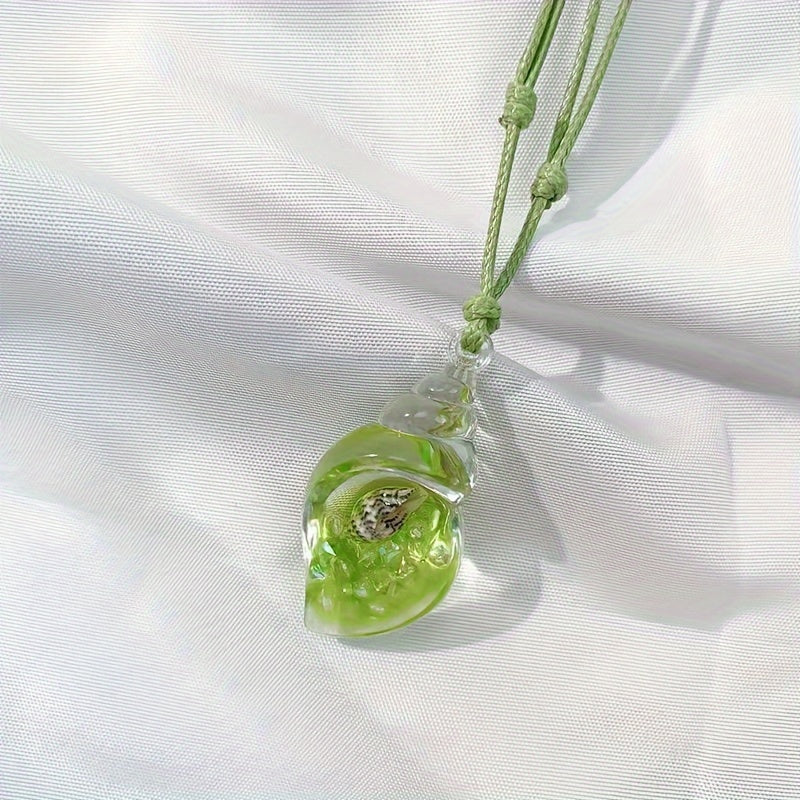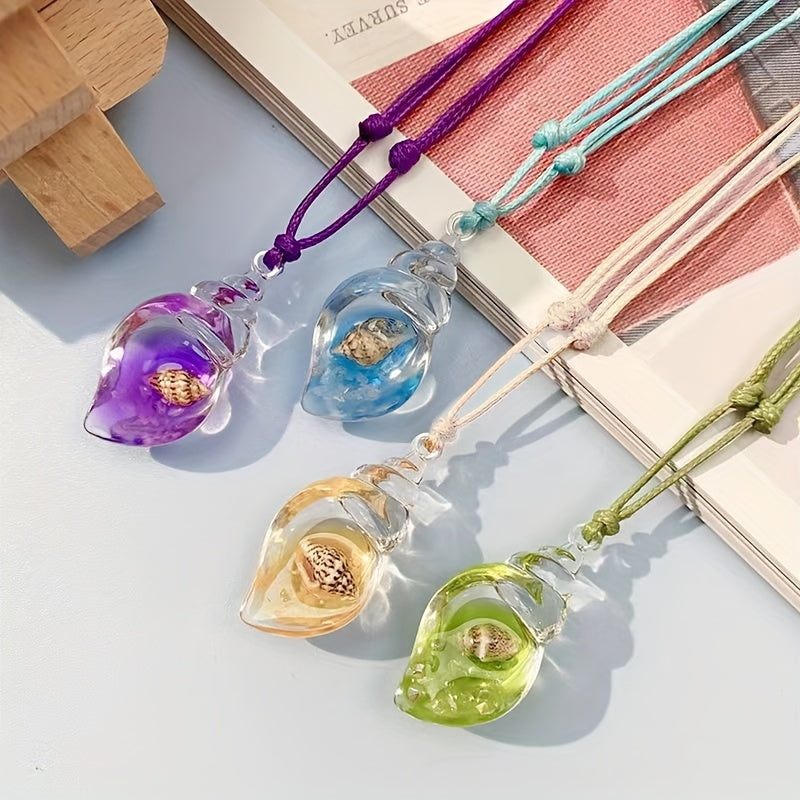 Elegant sea glass necklace featuring a colorful shell inclusion pendant. Perfect for vacation parties, teacher's gifts, and graduation celebrations.