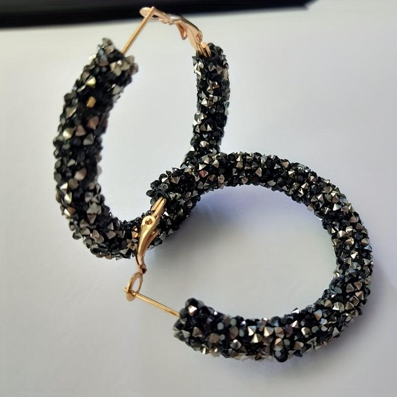 Make a statement with these large sparkling crystal hoop earrings. These boho chic earrings are perfect for adding a touch of glam to any outfit. Ideal for birthdays or special occasions.