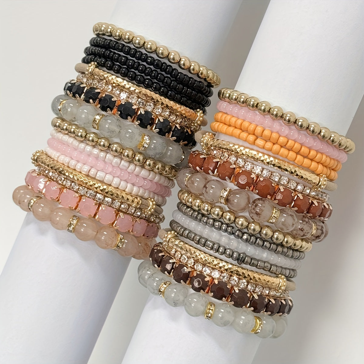Boho Glass Bead Bracelets Multicolor Elastic Stretch
