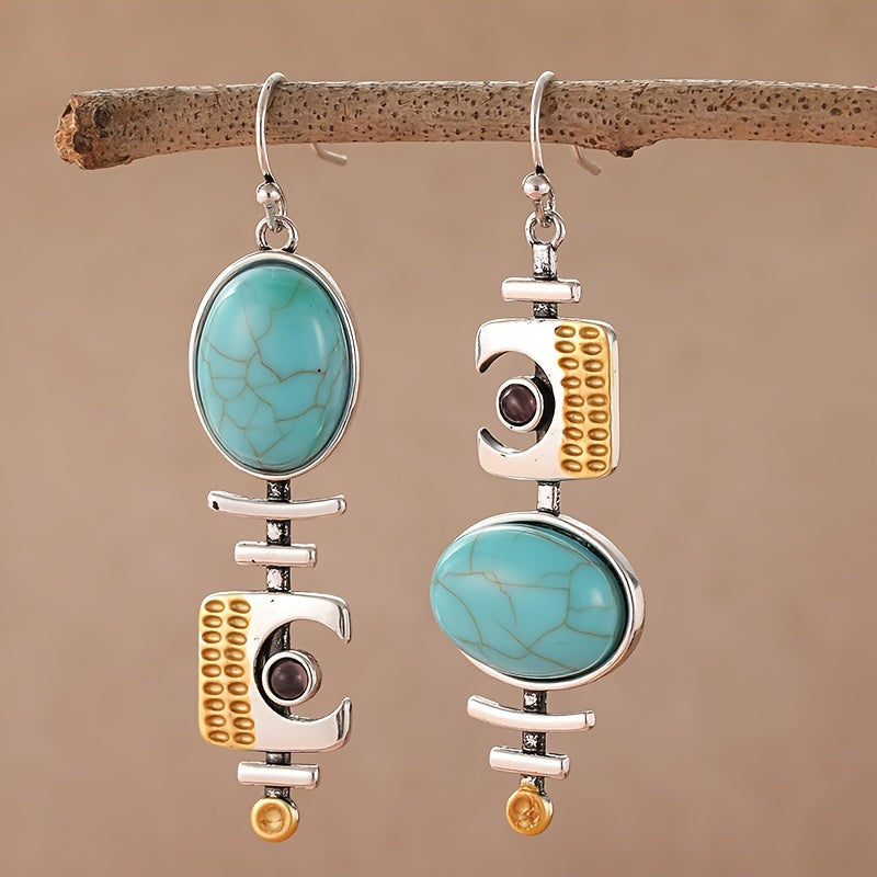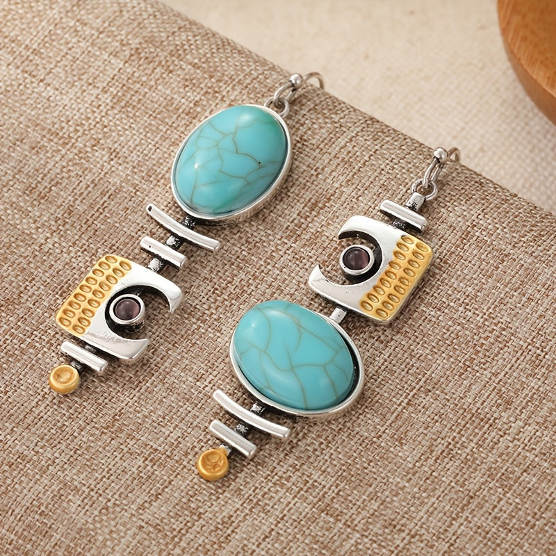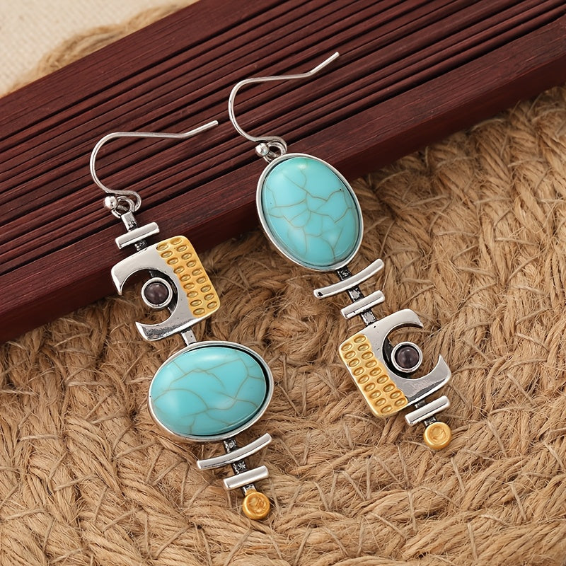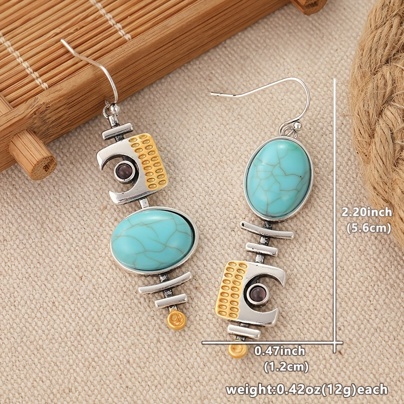 Make a statement with these eye-catching bohemian retro synthetic turquoise earrings. Perfect for daily wear, commuting, music parties, Christmas celebrations, and giving as a gift to your girlfriends with a touch of literary style.