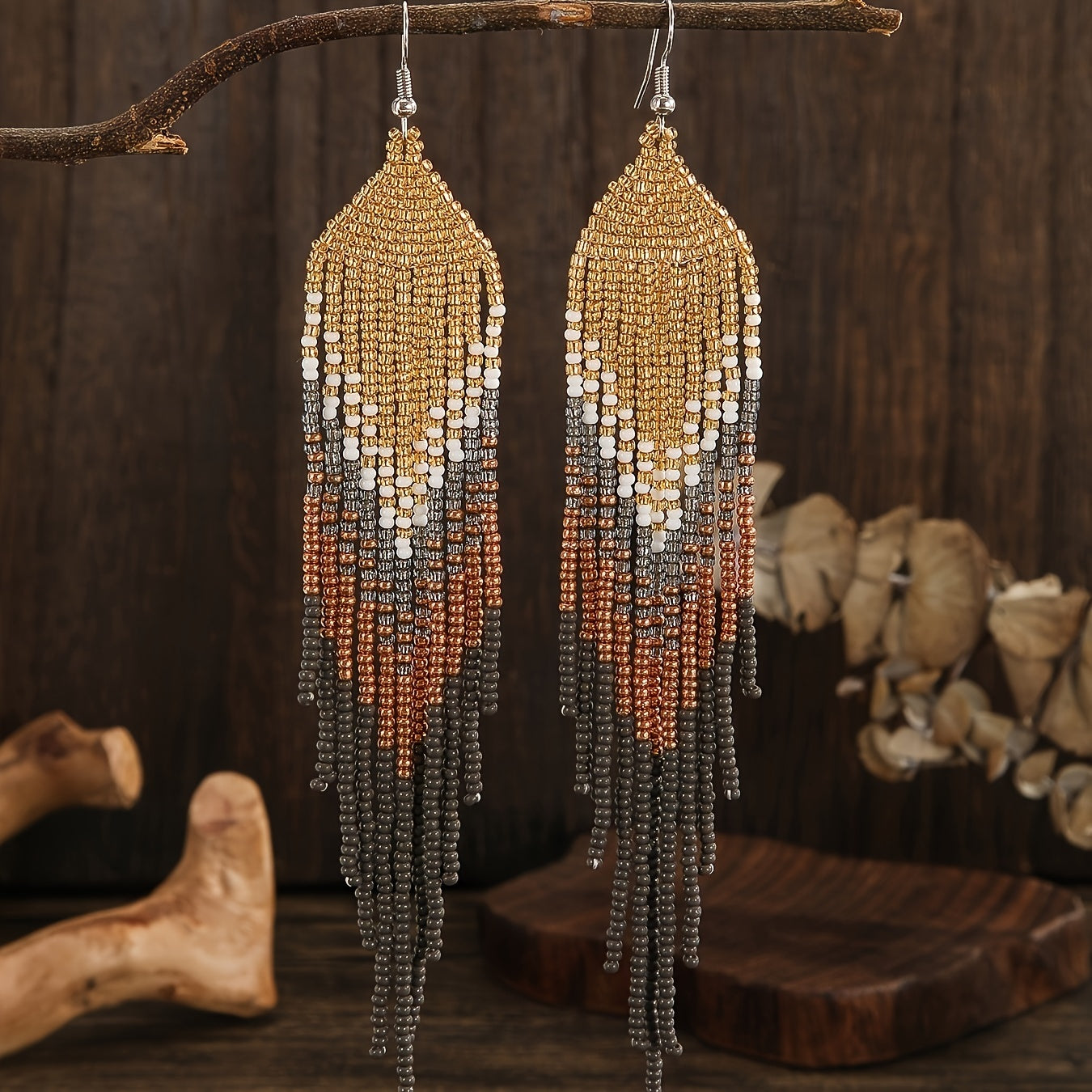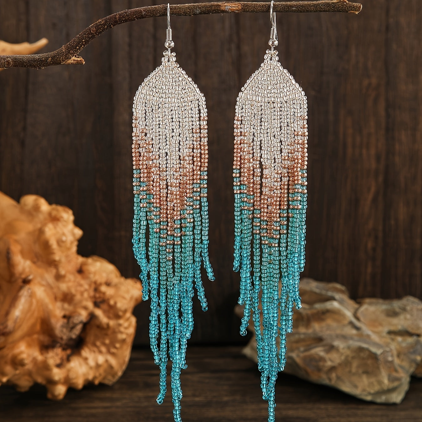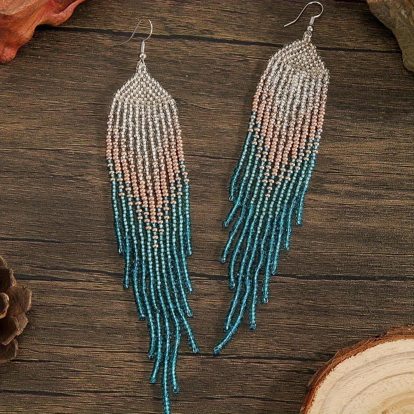 Boho Style Beaded Earrings Tassel Dangle Women 1 Pair