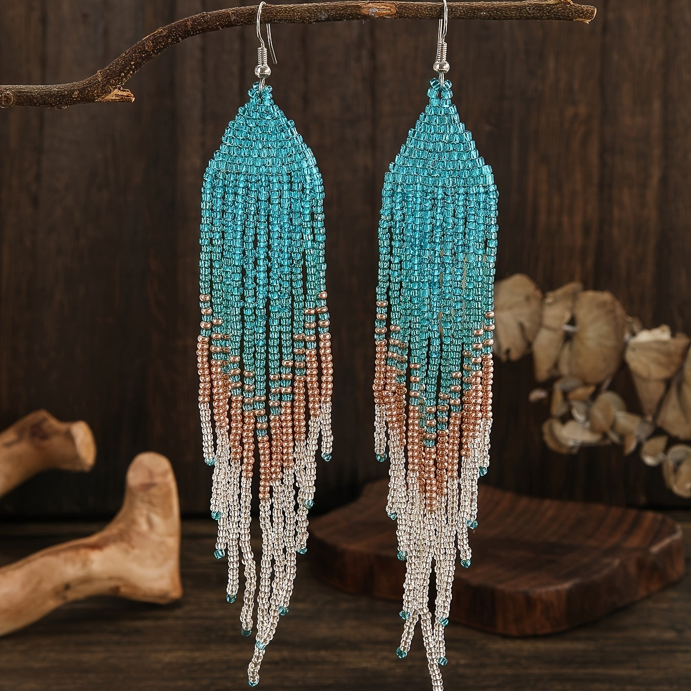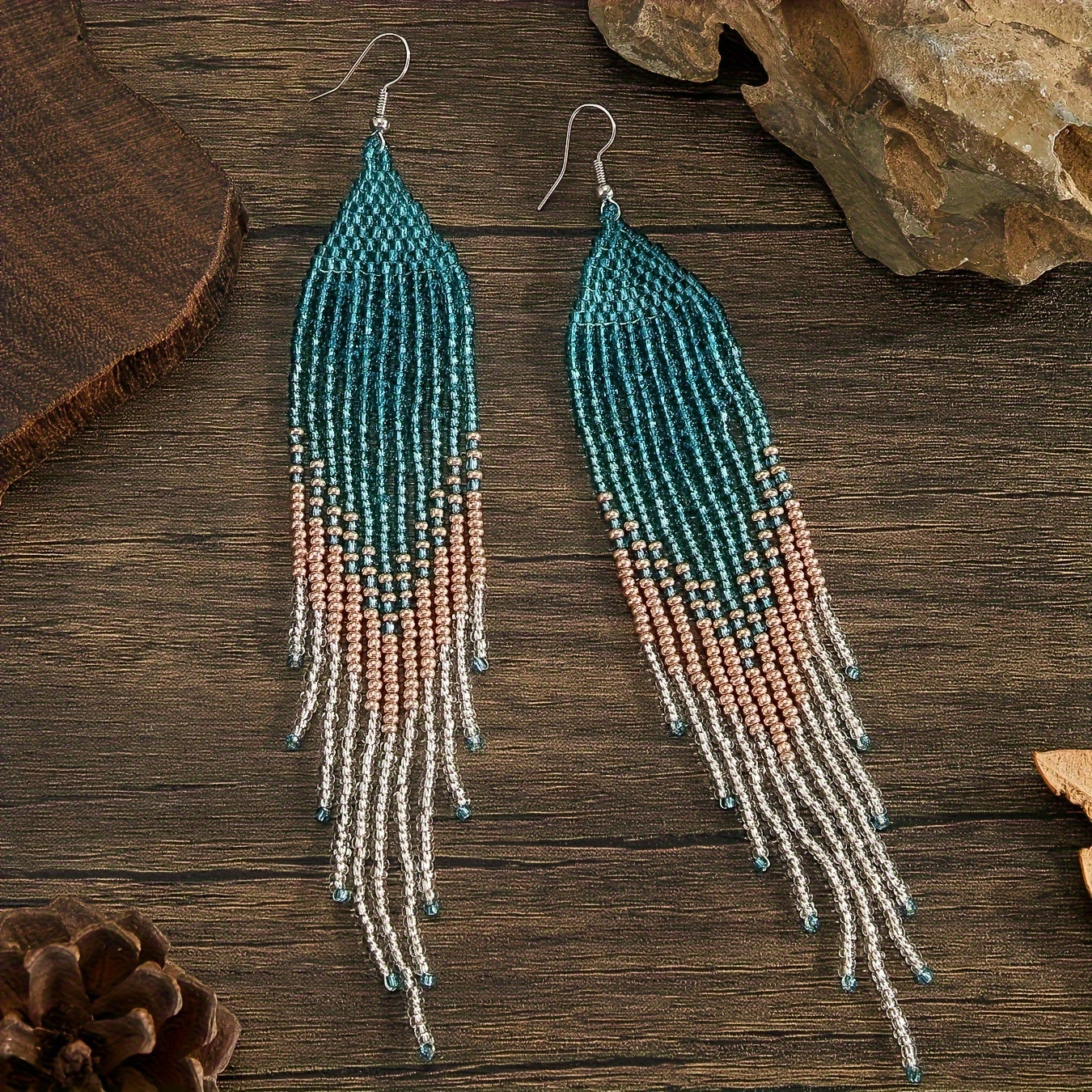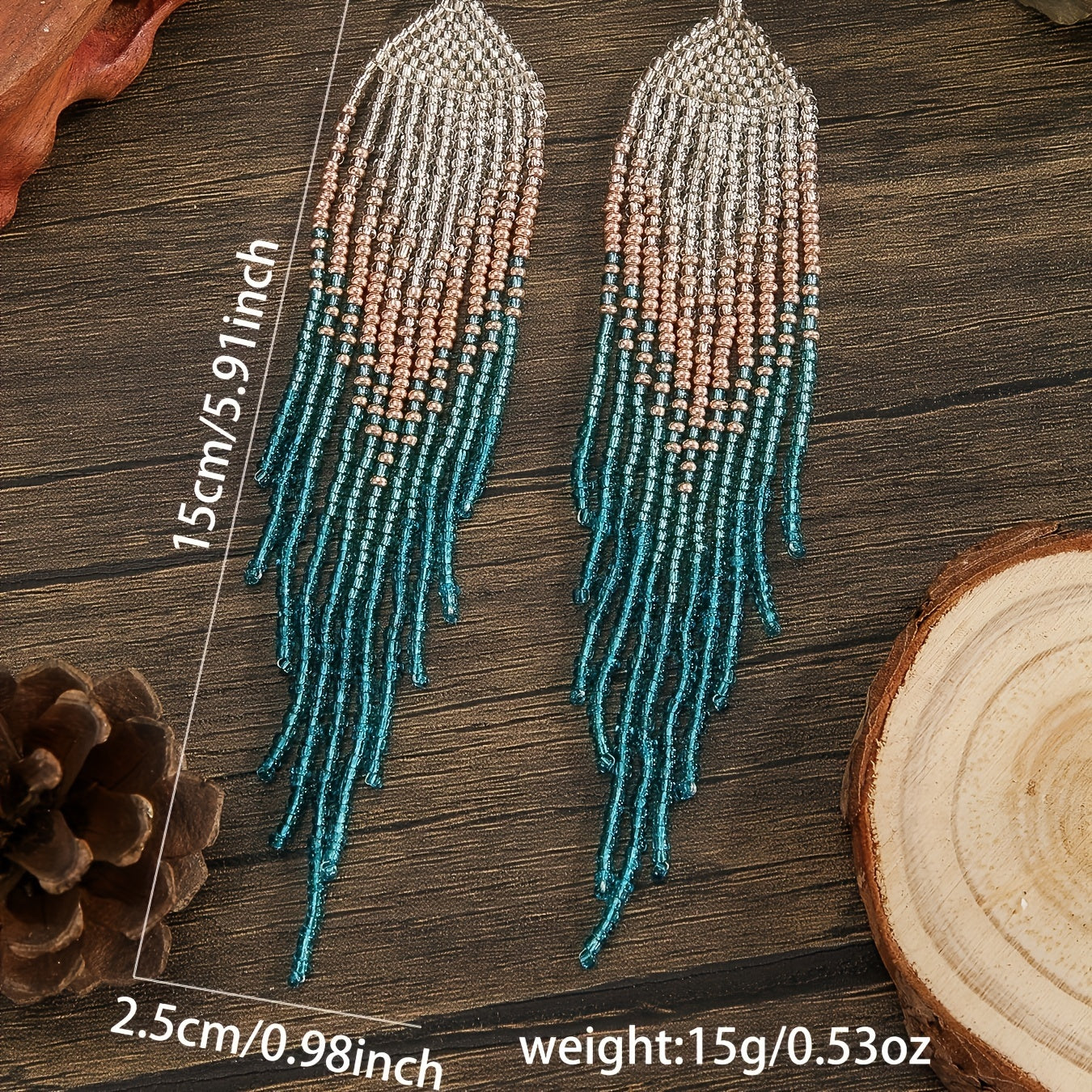 Boho Style Beaded Earrings Tassel Dangle Women 1 Pair