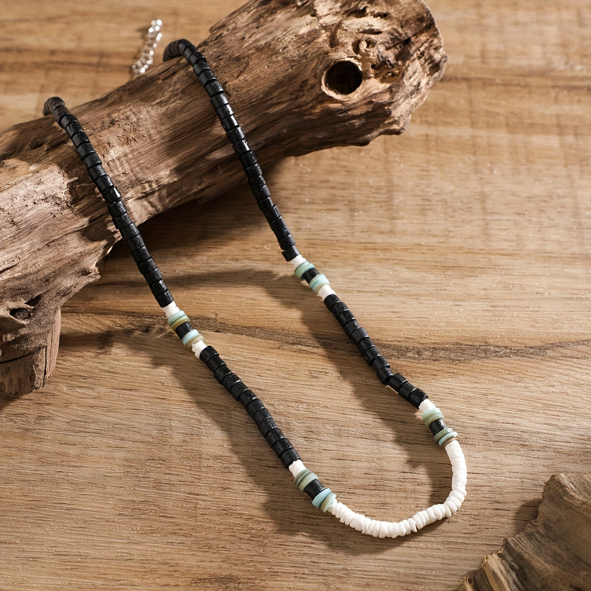 This Boho style men's necklace features wooden beads and is perfect for a surfer look. The clavicle chain is a great gift for men and is uncoated for a natural feel.