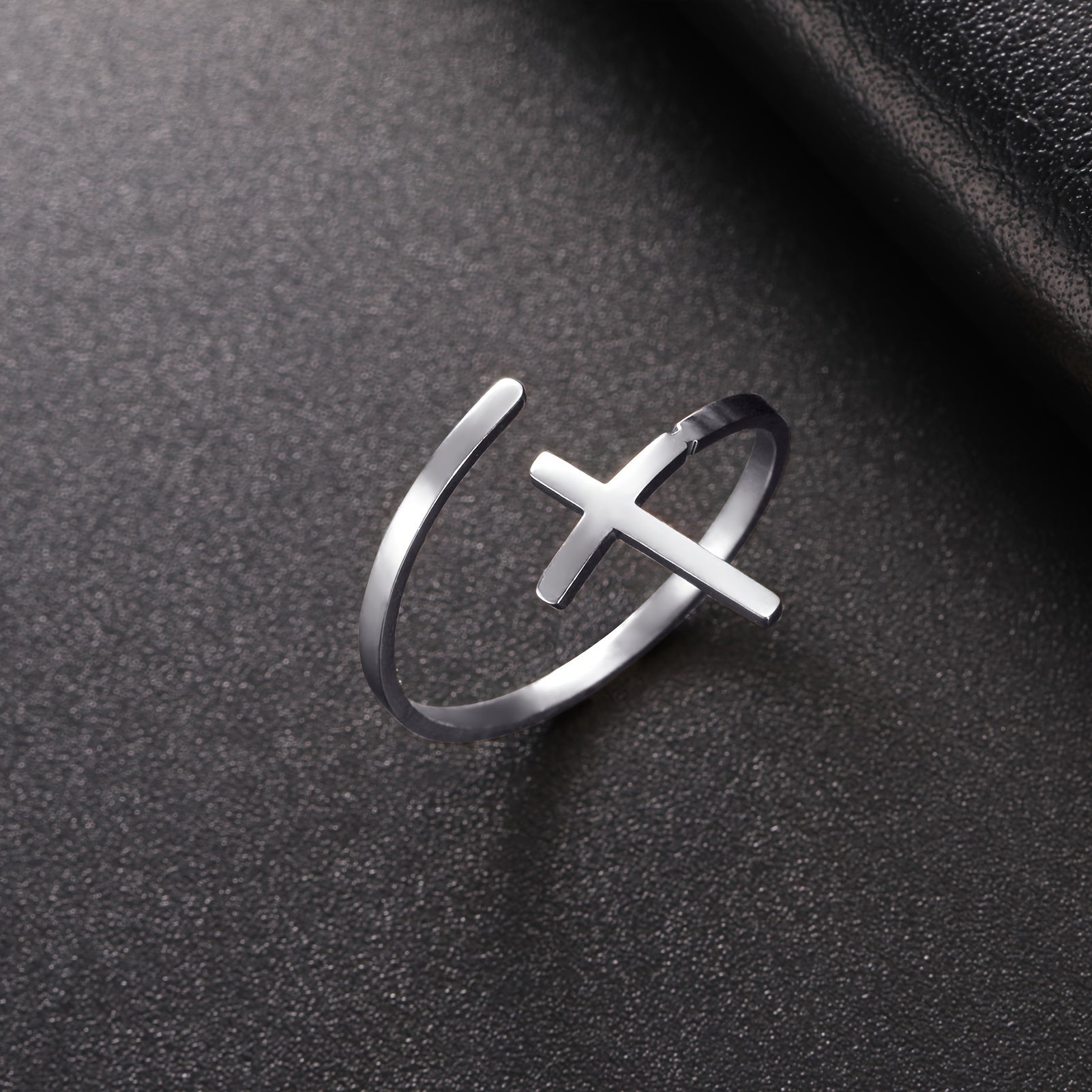 This adjustable stainless steel cross ring is a perfect boho style jewelry piece for men. It features a single open band ring design, making it an ideal talisman gift for friendship.