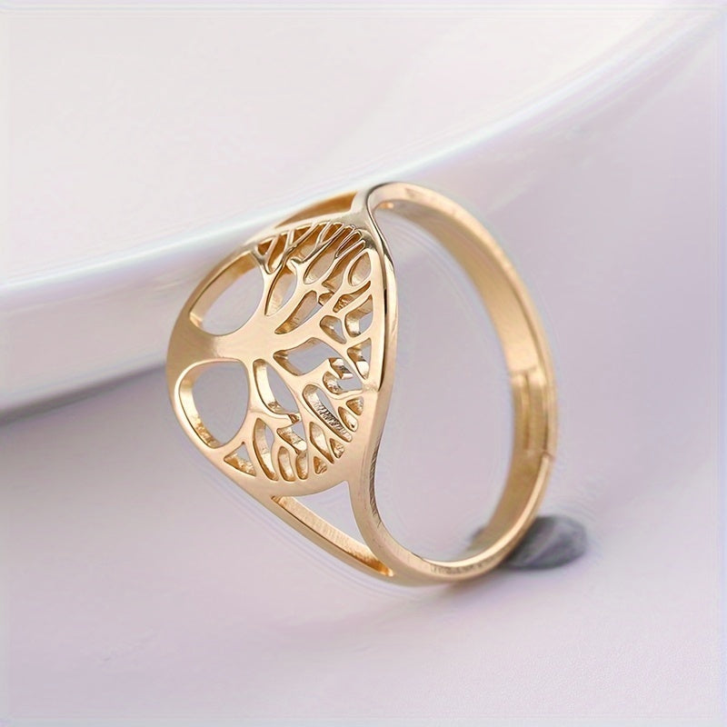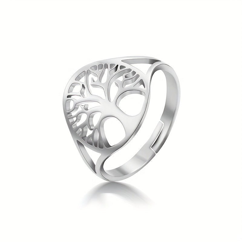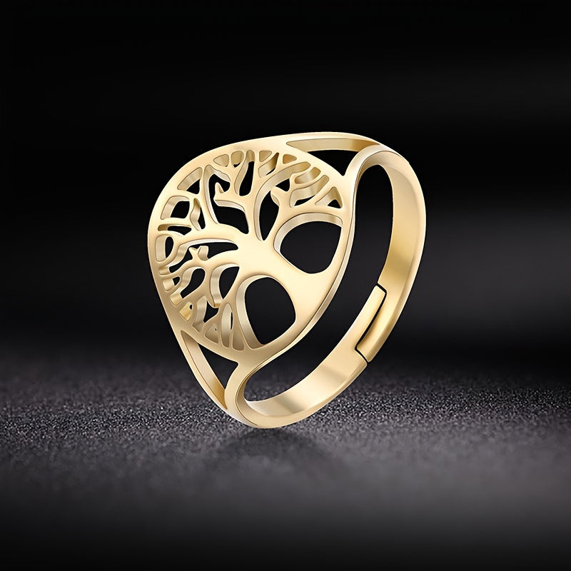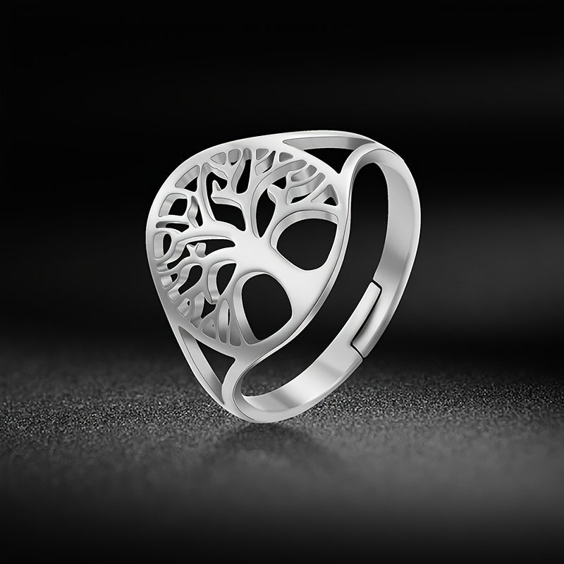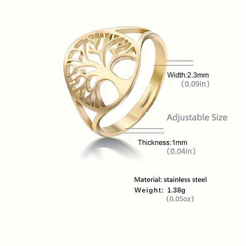 This adjustable ring features a tree of life design and a hollow cross, making it an ideal birthday gift for couples who love boho style jewelry.