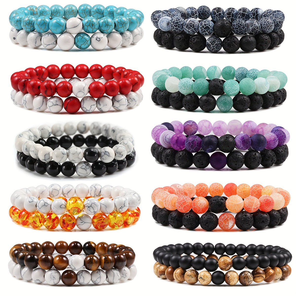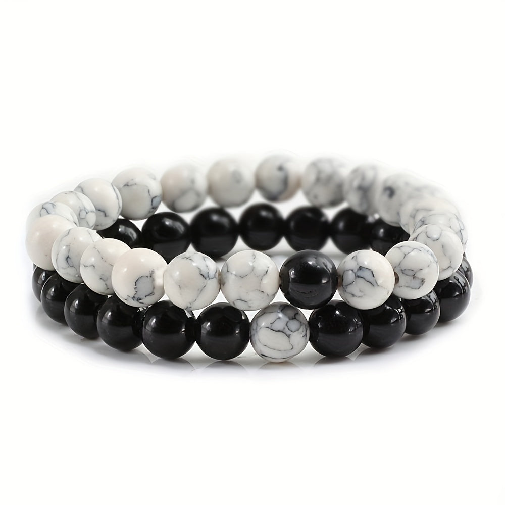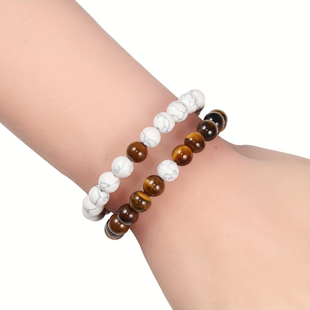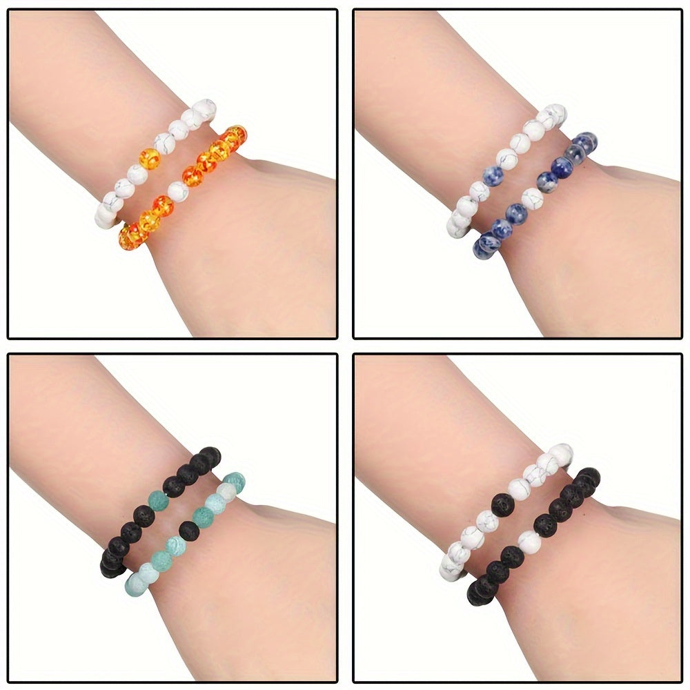 These matching crystal stretch bracelets are perfect for couples. Made with natural stone beads, they are ideal for daily wear and a great choice for Valentine's Day.