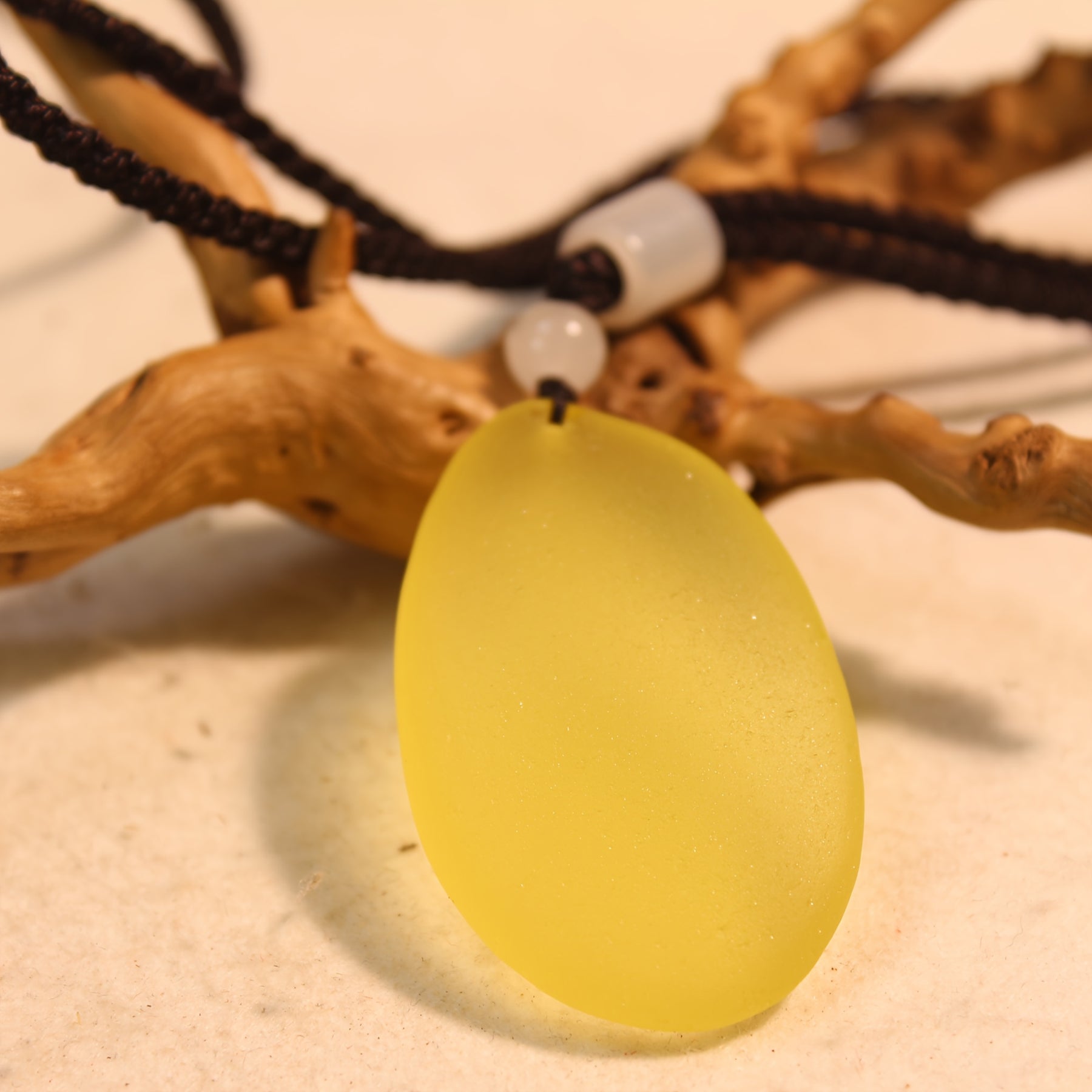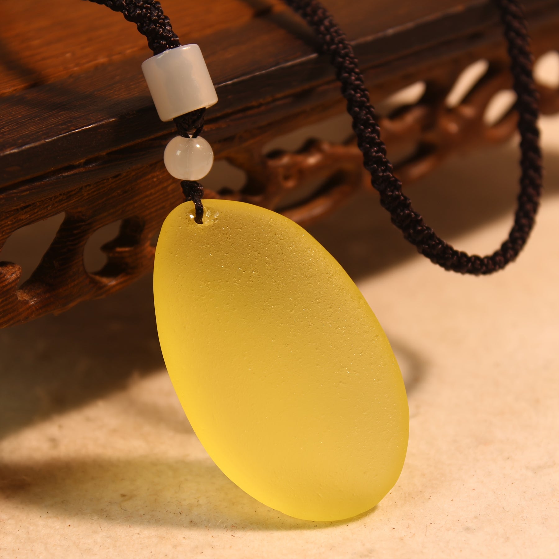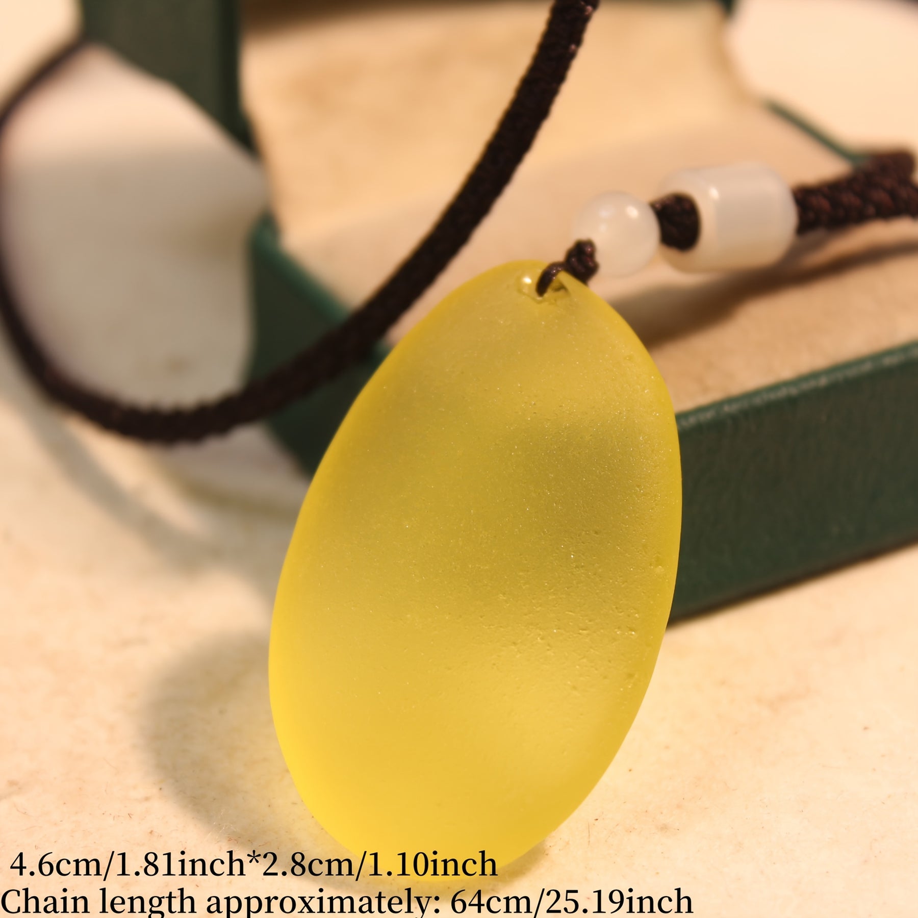 Add a touch of bohemian flair with this large yellow meteorite pendant necklace featuring an irregular shape cord with beads. Perfect for men and women born in August.