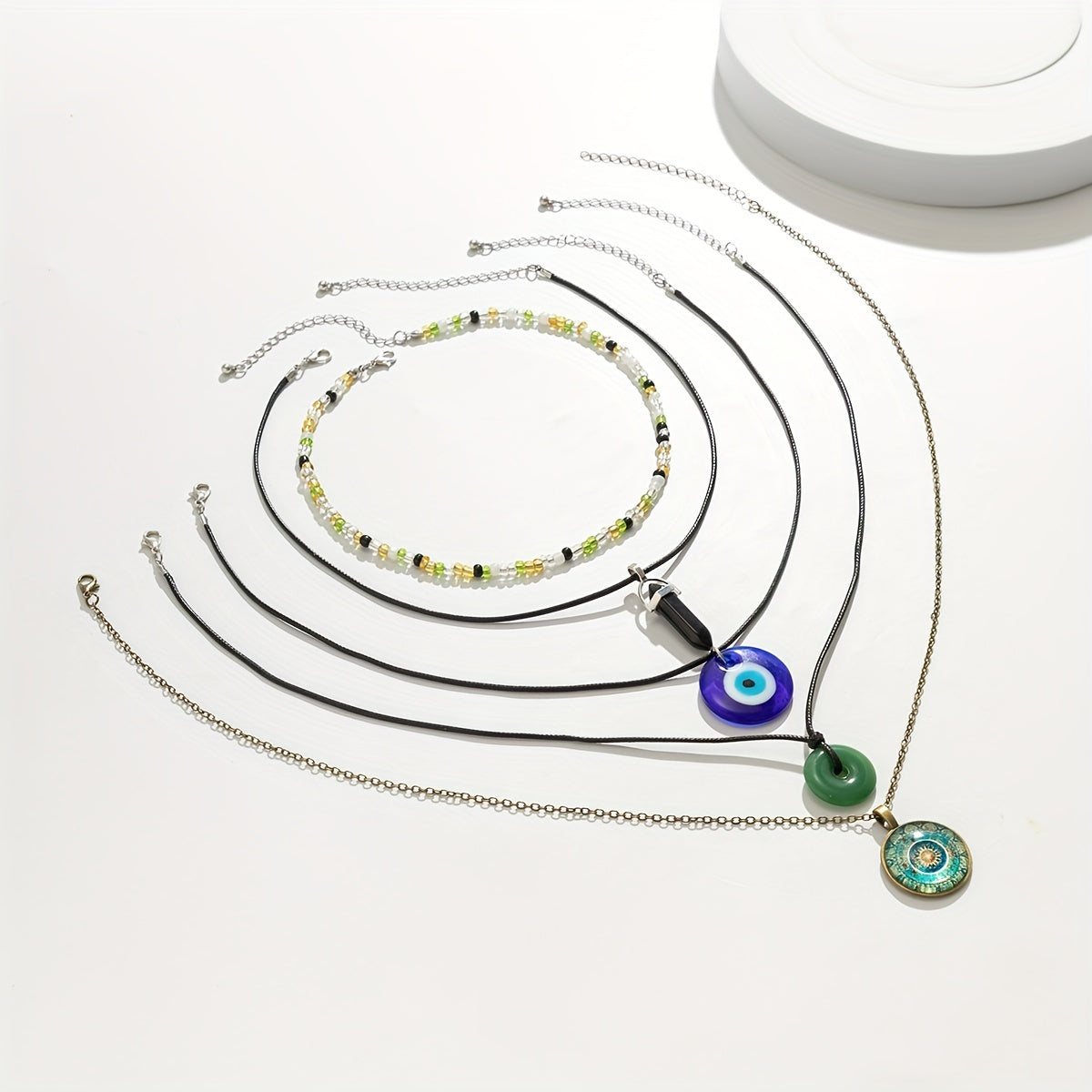 Embrace bohemian western style with these versatile necklaces featuring evil eyes and artificial crystal pendants. Lightweight and fashionable, perfect for gifting to friends.