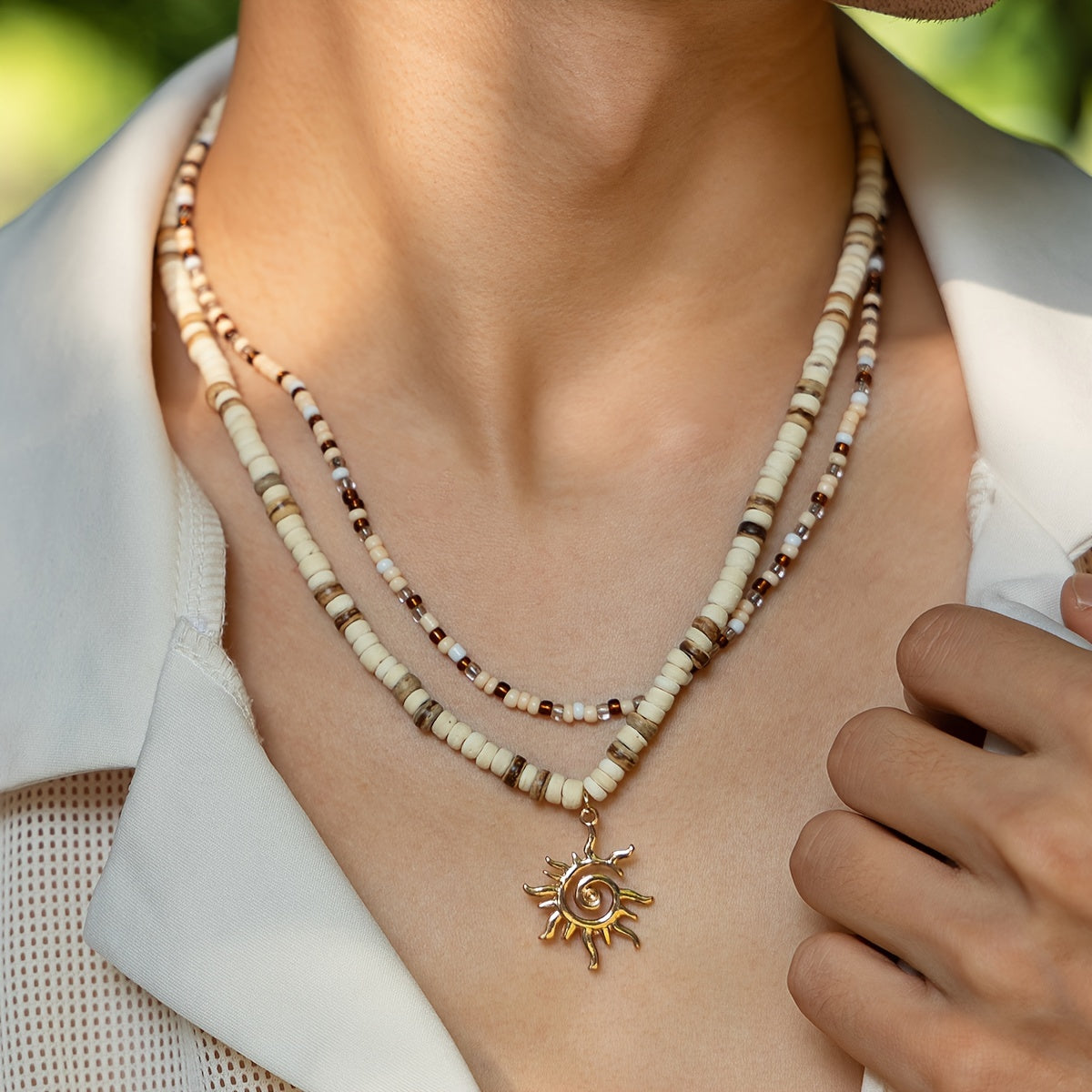 Retro beaded necklace for men and women, perfect for daily casual accessorizing. Family-friendly design.
