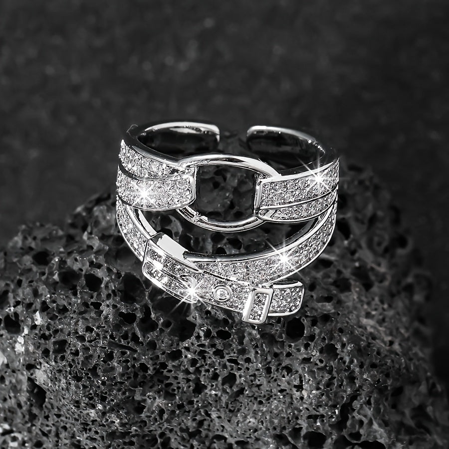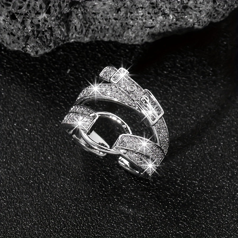 Elevate your style with this fashionable and delicate ring featuring a bold circle belt buckle design. Perfect for adding a touch of elegance to any outfit.
