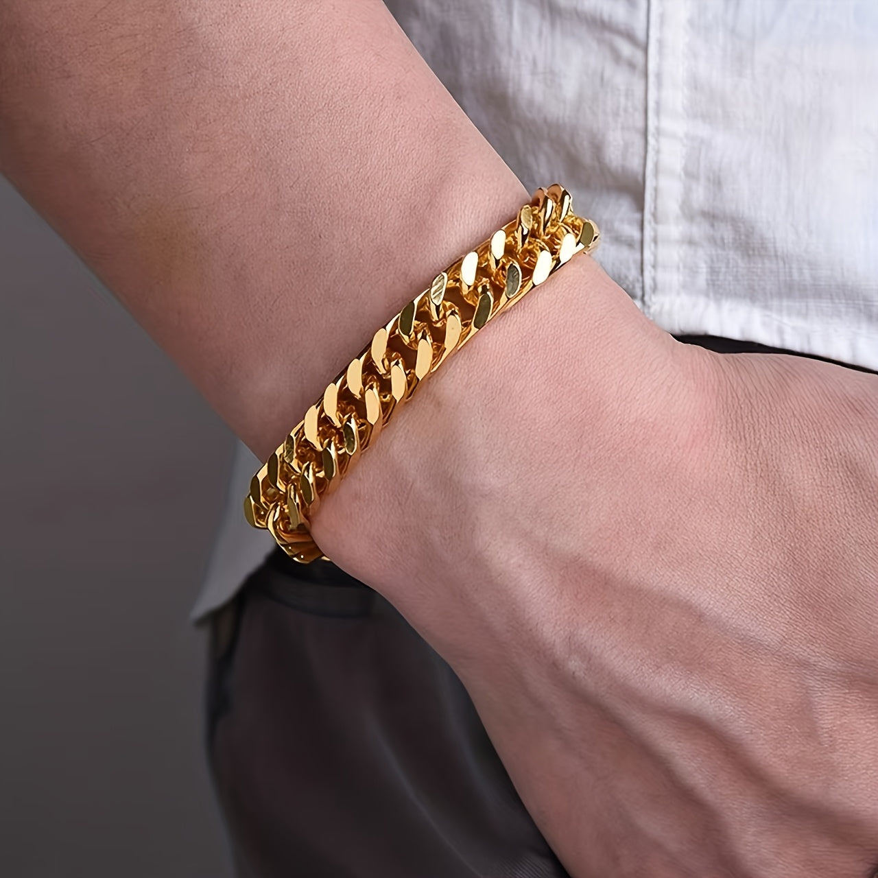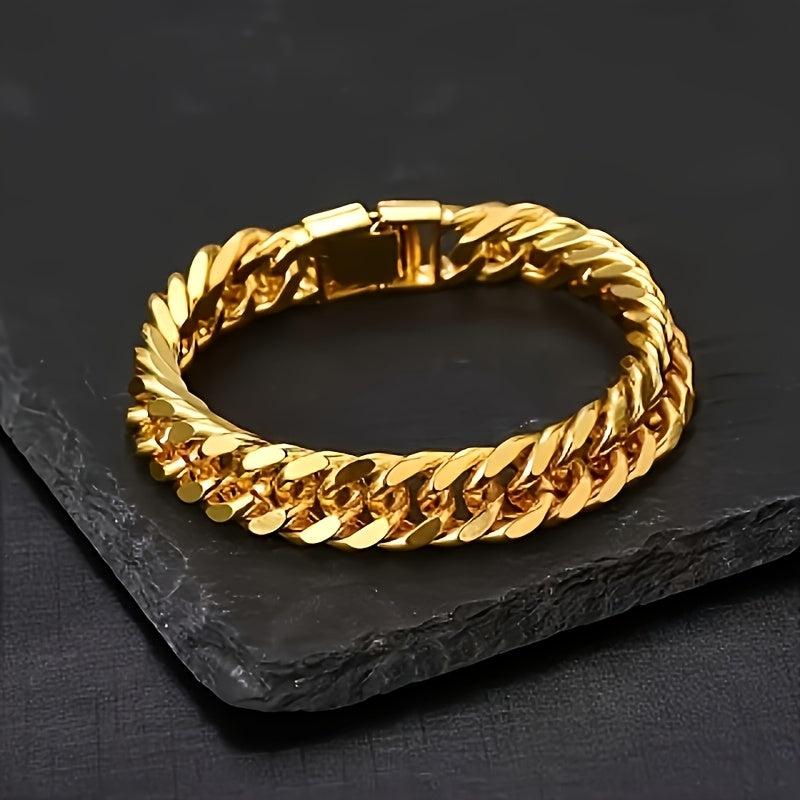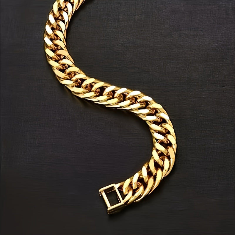 Gift your boyfriend this stylish double-breasted bracelet with a Cuban link design. Perfect for hip hop enthusiasts.