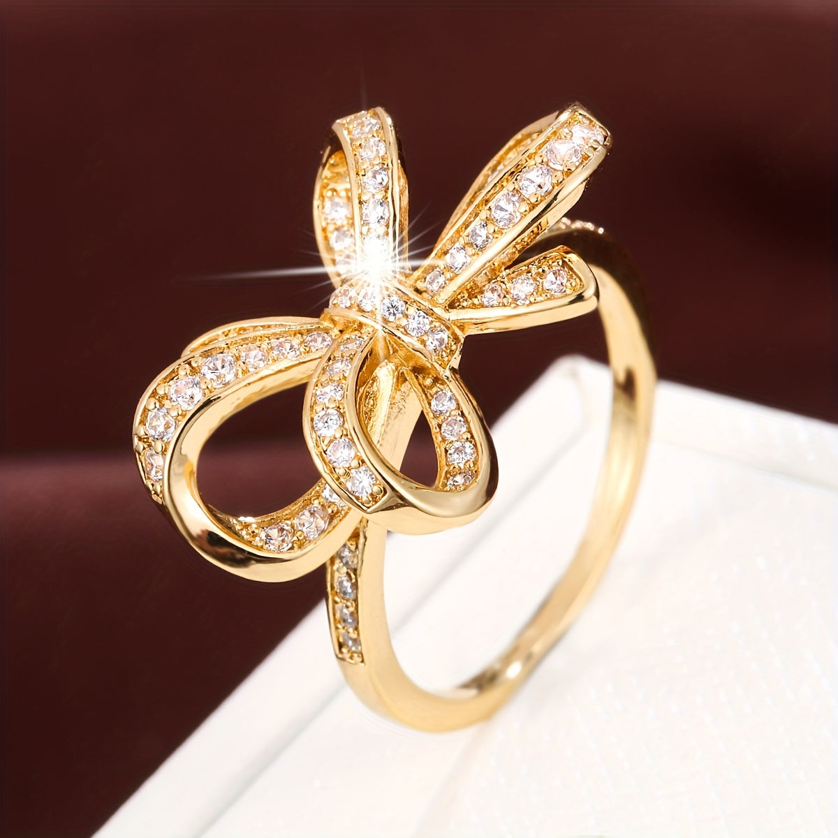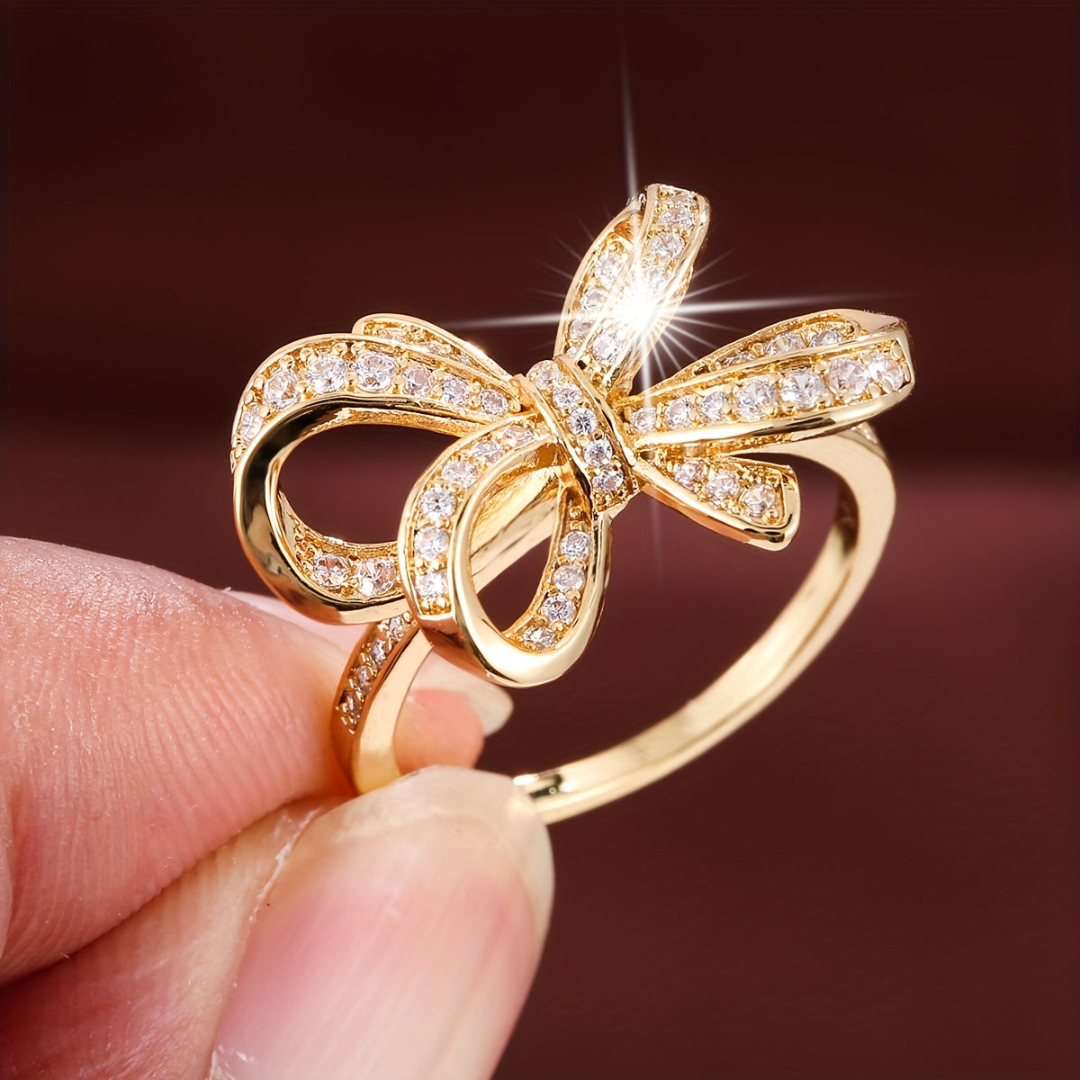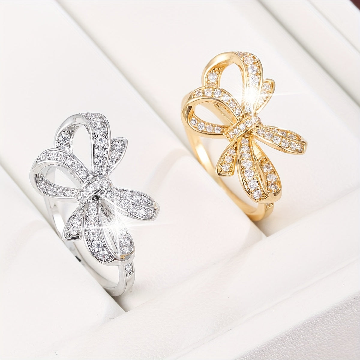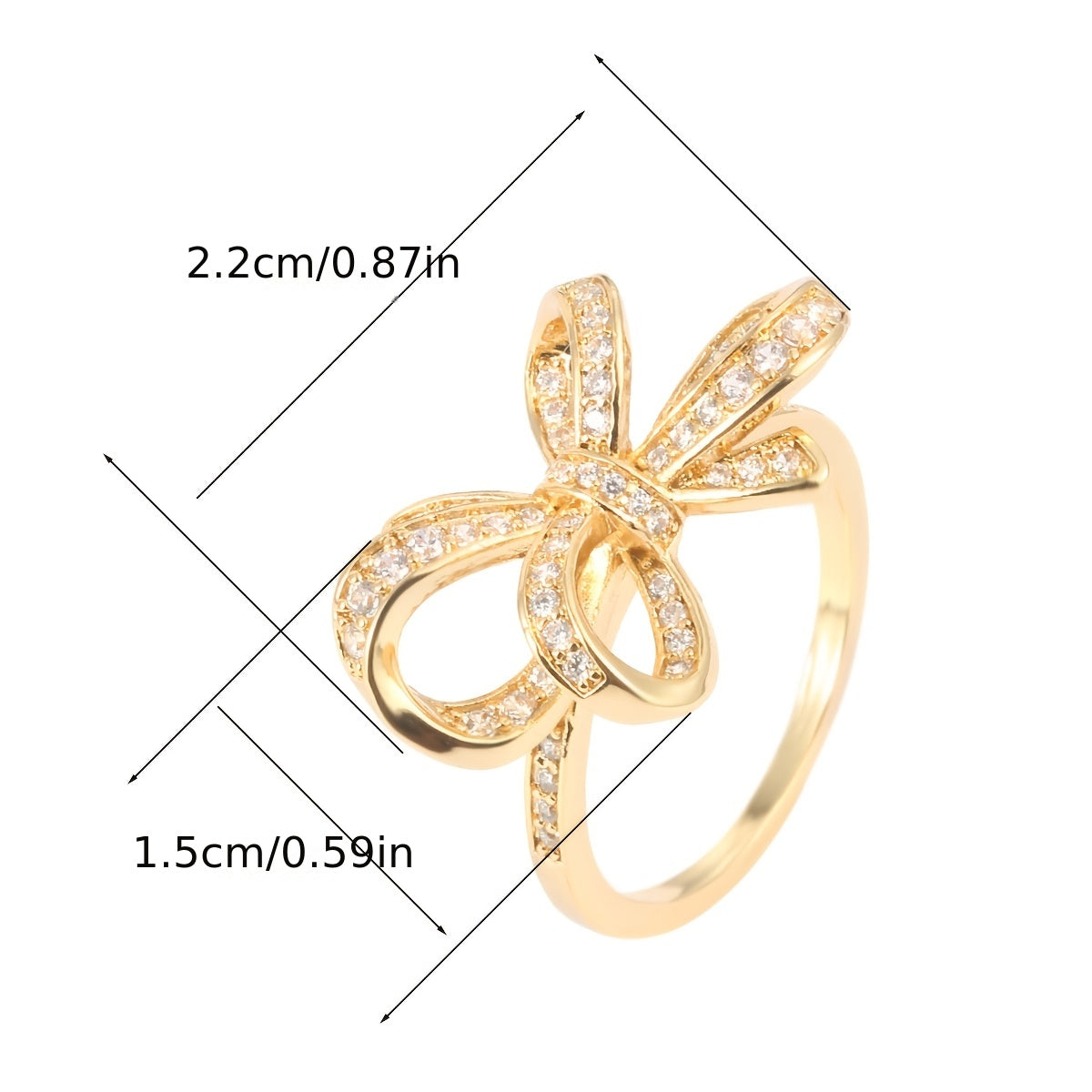 This ring features a stylish bow tie design with inlaid synthetic zirconia, perfect for adding a touch of elegance to any outfit.