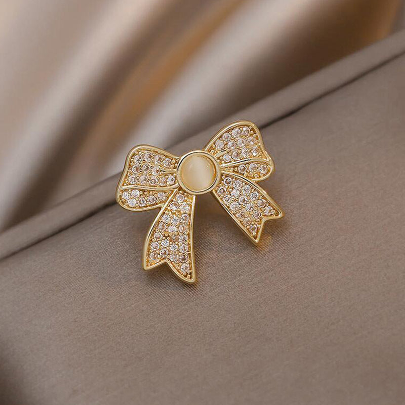 Add a touch of elegance to your outfit with this beautiful bowknot rhinestone brooch pin featuring faux pearls. Perfect for weddings and special occasions.
