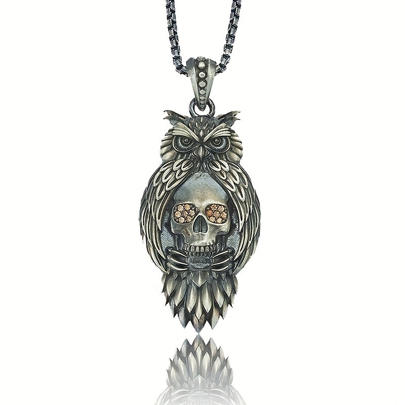 This domineering necklace features a shaking live style owl pendant made of titanium steel, perfect for boys with a bold fashion sense.
