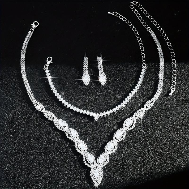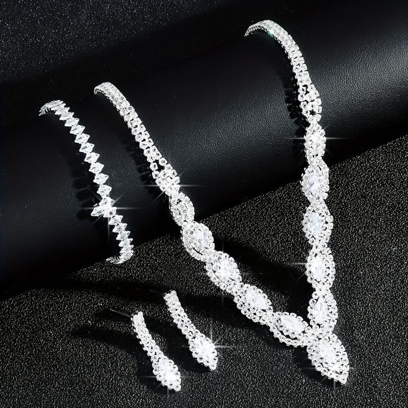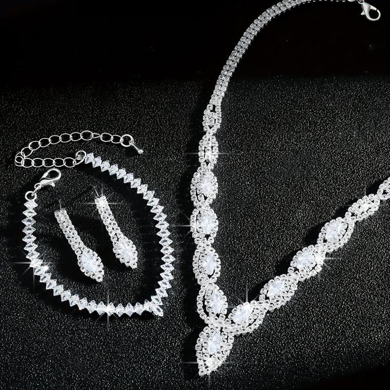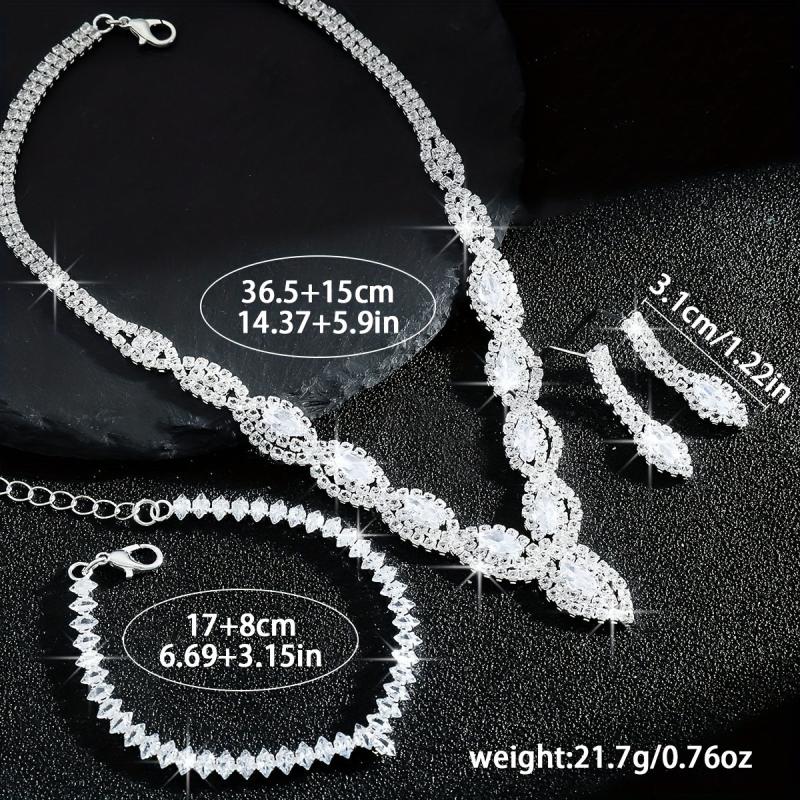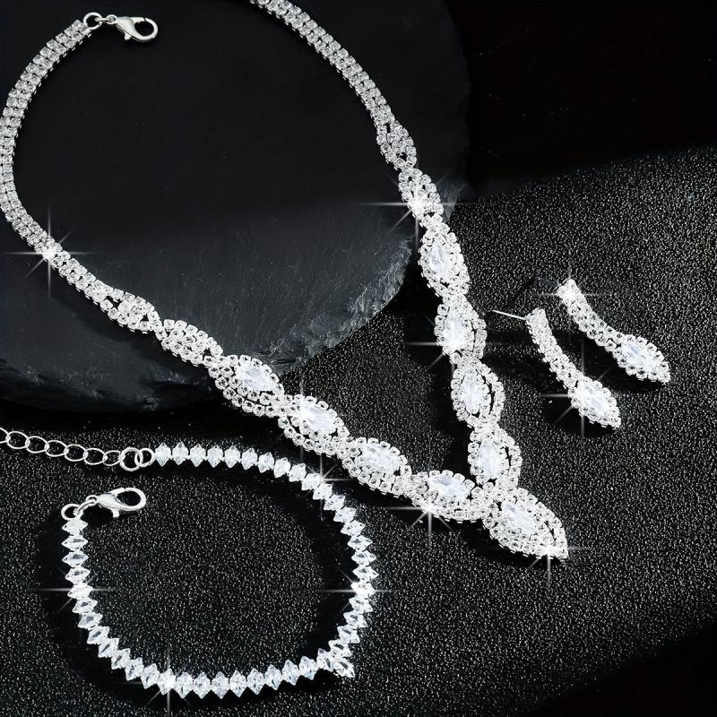 Exquisite high-quality set featuring Synthetic Cubic Zirconia in horse eye shapes. Includes necklace, bracelet, and earrings.