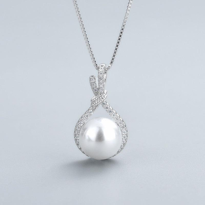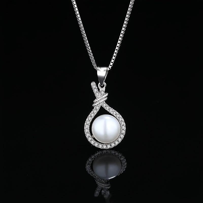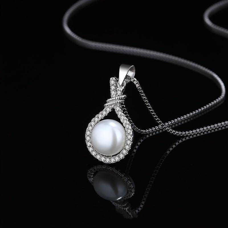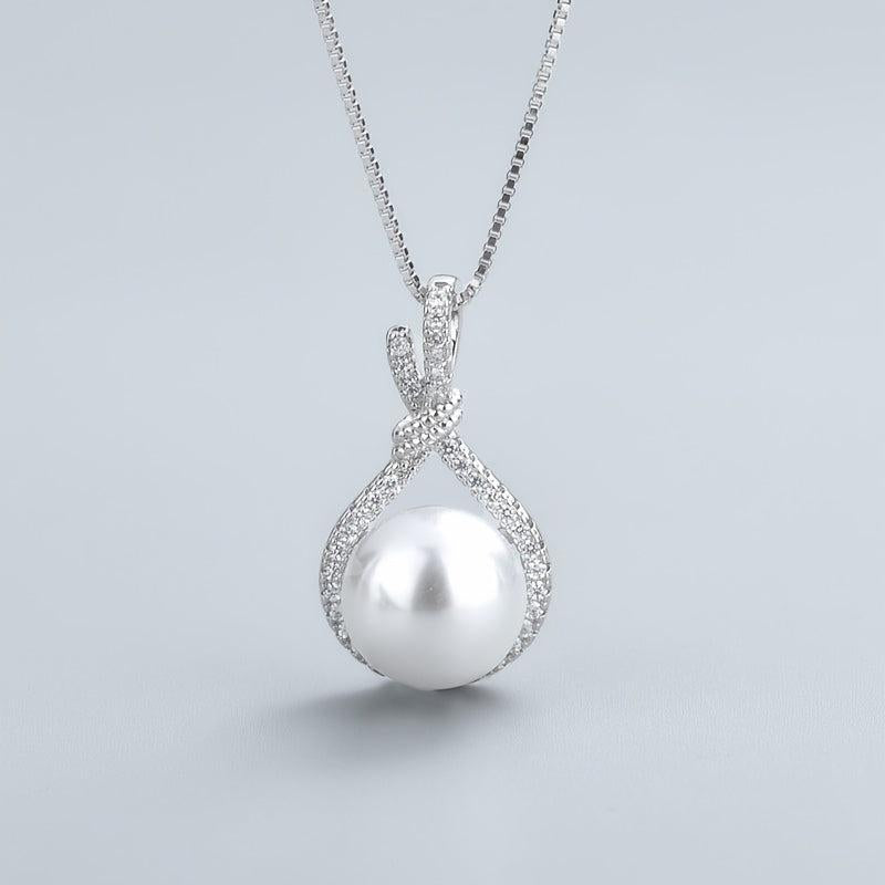 Elegant pearl pendant necklace featuring January birthstone with synthetic zirconia stones. Perfect for daily wear, banquet, anniversary, and engagement.