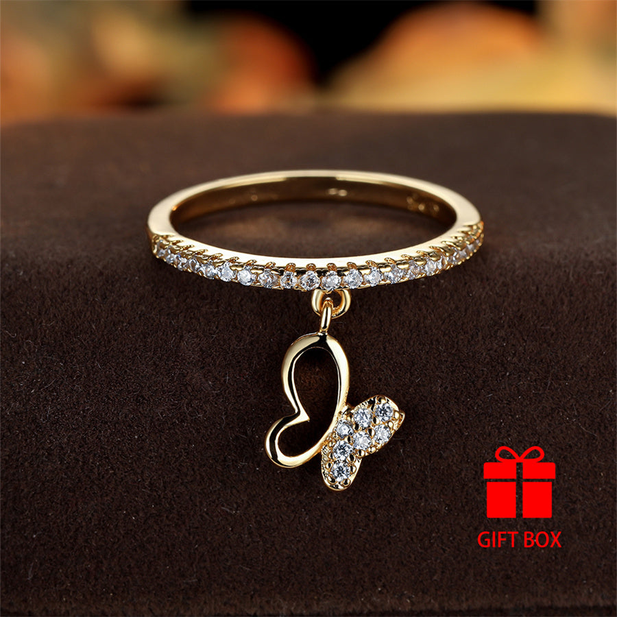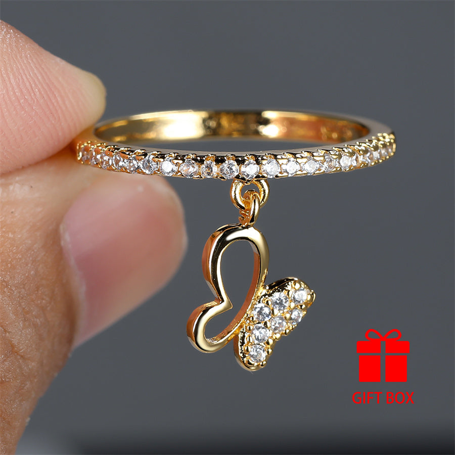 This stunning butterfly pendant ring is made of high-quality synthetic zirconia and copper. It is an elegant accessory suitable for daily wear and gift-giving occasions. Perfect for all seasons.