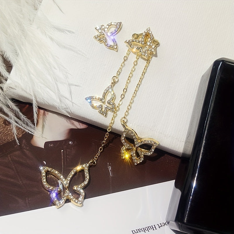 Surprise your friends with these stunning butterfly rhinestone earrings. The perfect accessory for any outfit.