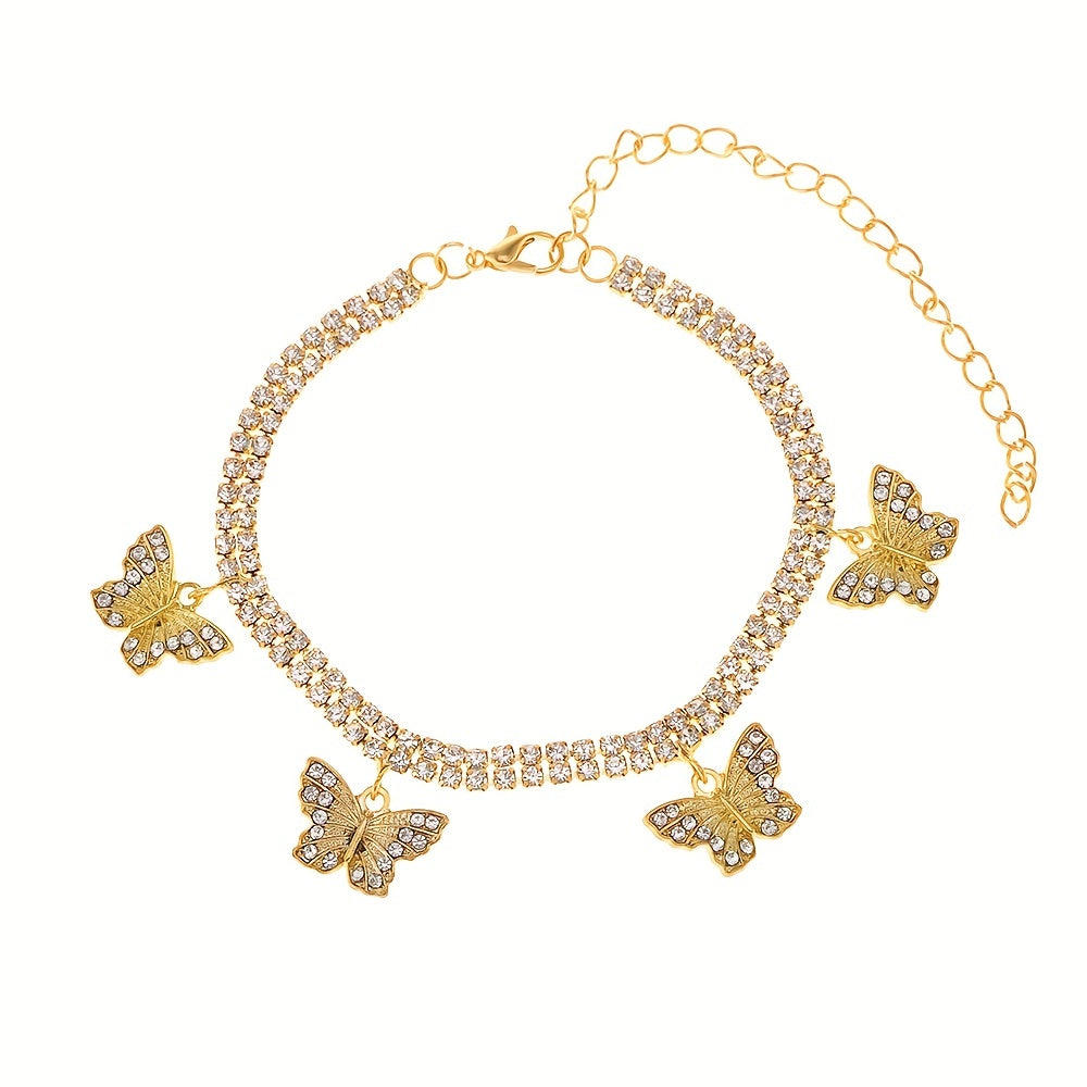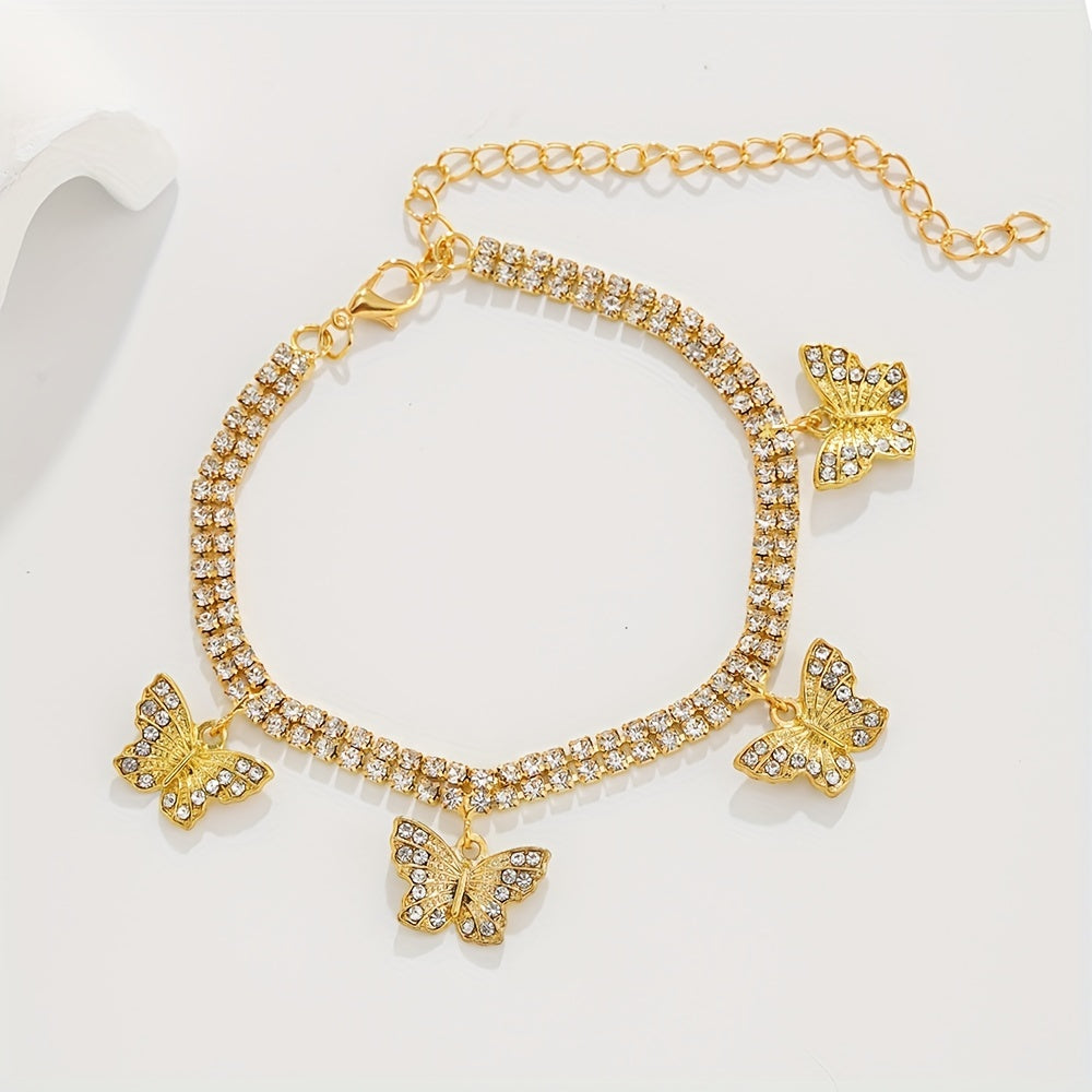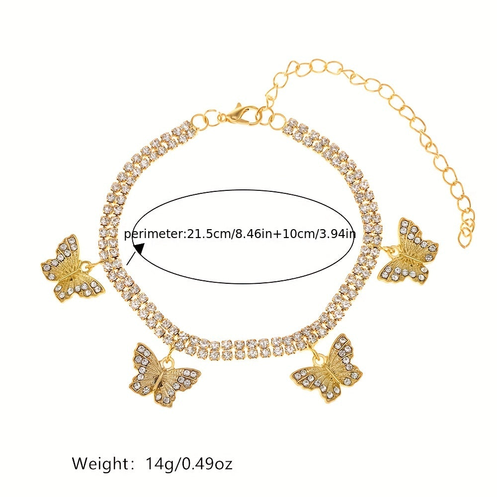 Add some sparkle to your feet with this elegant foot chain featuring a butterfly-shaped tassel pendant with inlaid rhinestones.