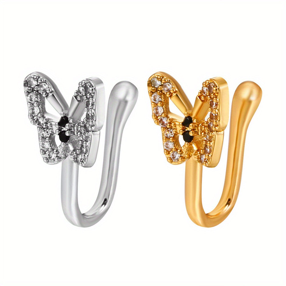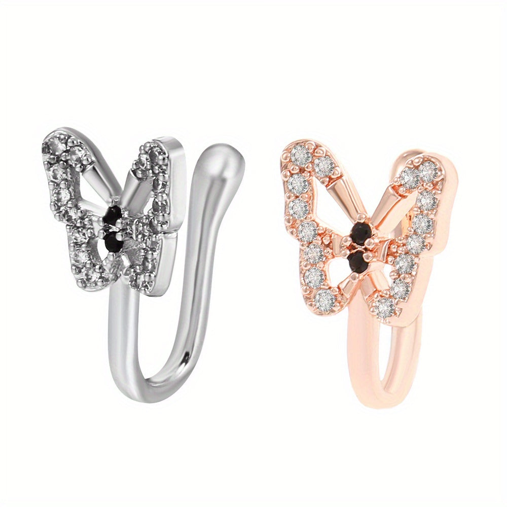 Enhance your style with this rhinestone studded butterfly U shape nose ring. Perfect for women and girls who love fashionable jewelry accessories.