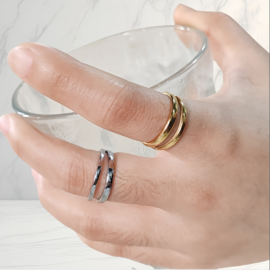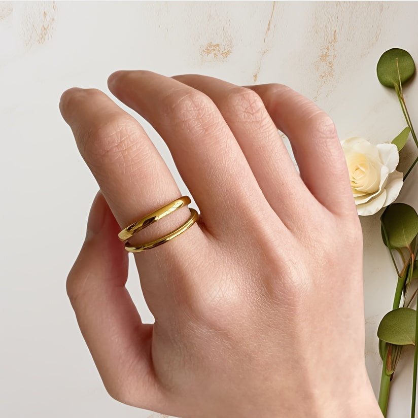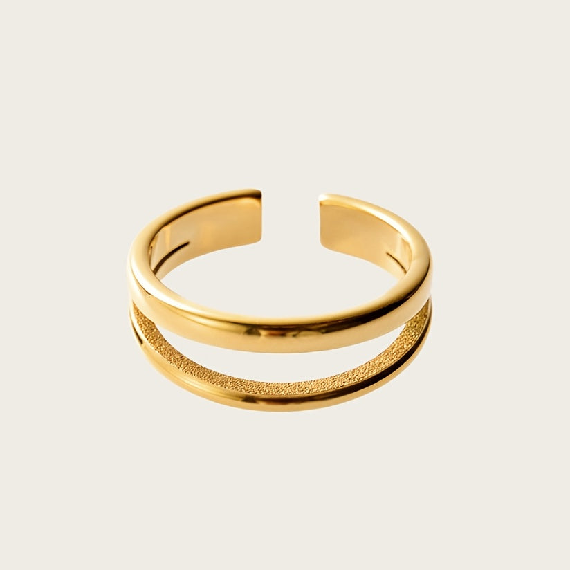 This open ring features a minimalist design with a retro style. Made of high-quality stainless steel, it is adjustable to fit any finger size.