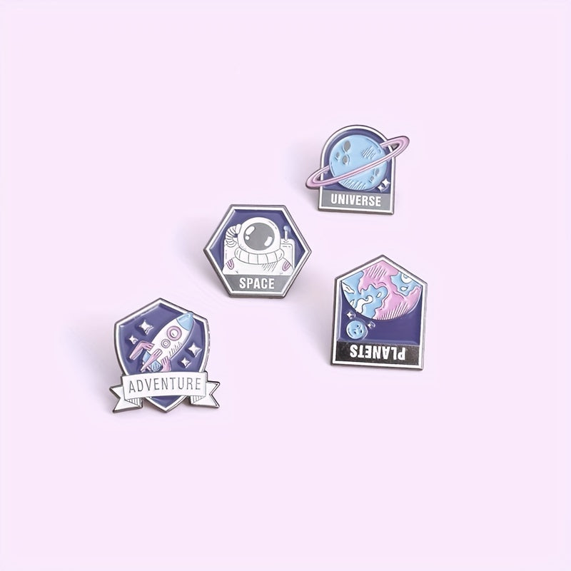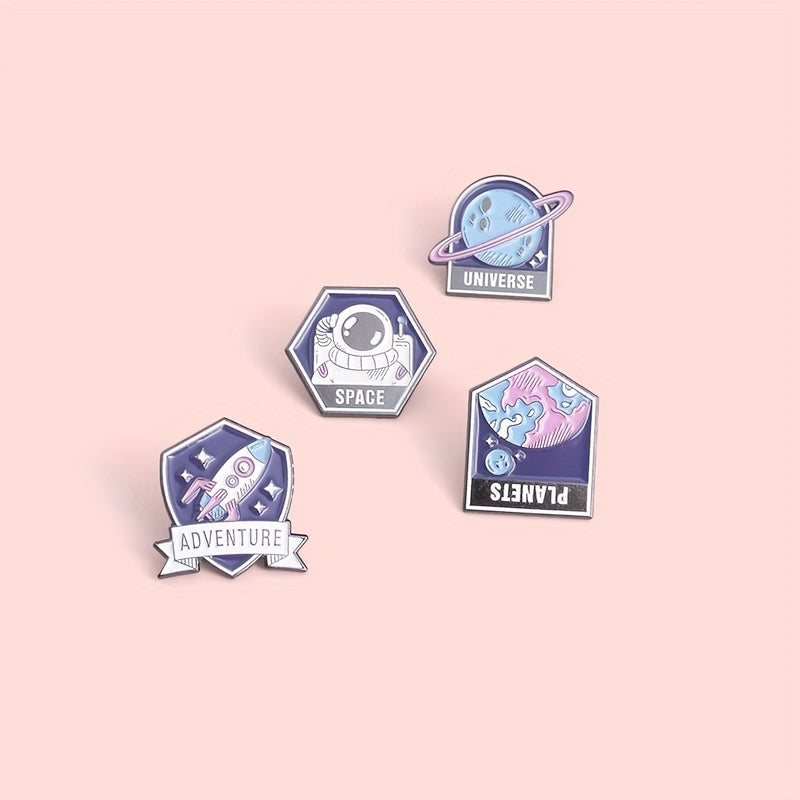 This cute collar pin brooch features a cartoon astronaut with Earth and rocket shapes. It is made of alloy with painted details, adding a fun and stylish touch to your outfit.