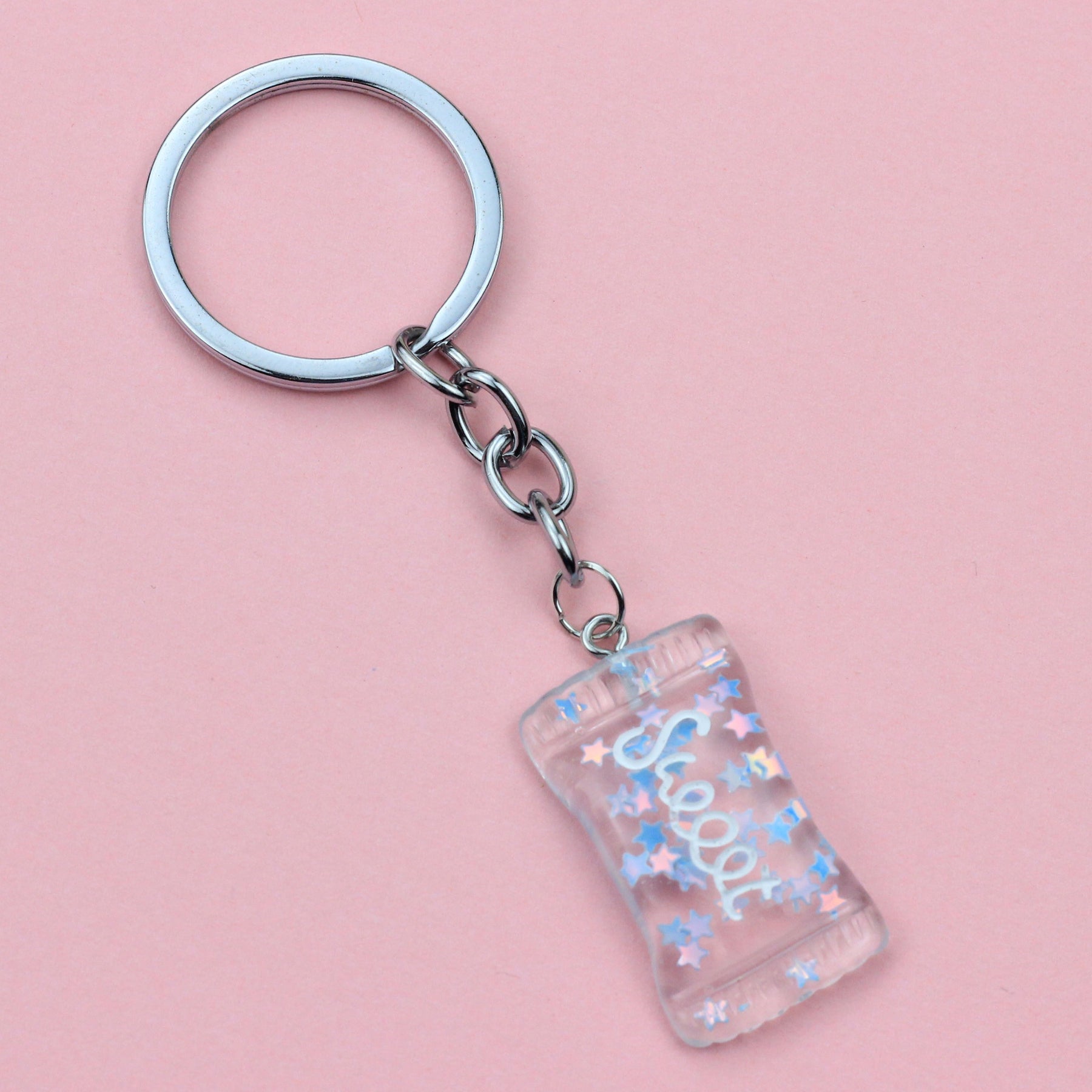 Add some fun and charm to your school bag with this cute cartoon candy keychain spoon buckle. It's a creative accessory that will brighten up your day.